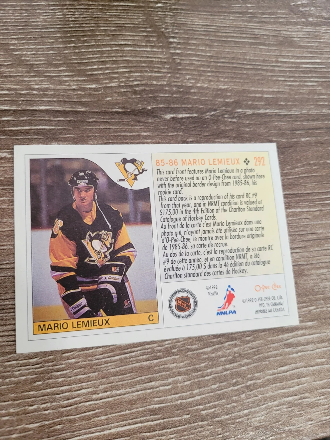1992 Mario Lemieux O-Pee-Chee Hockey Card