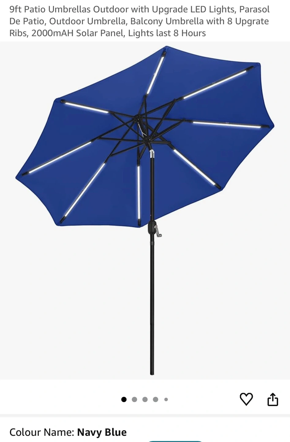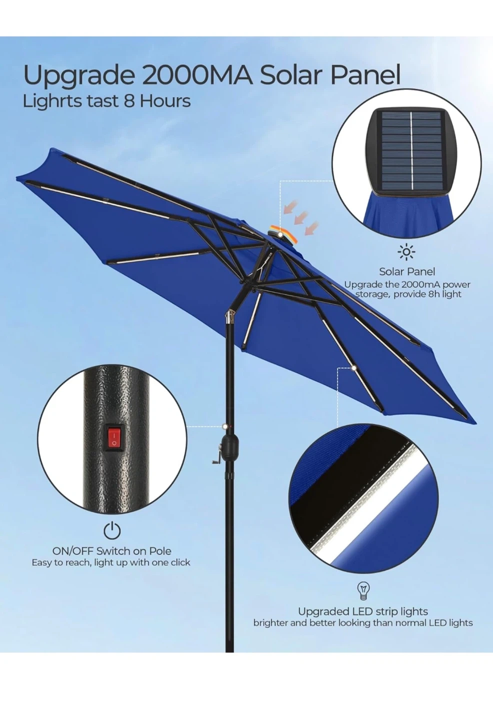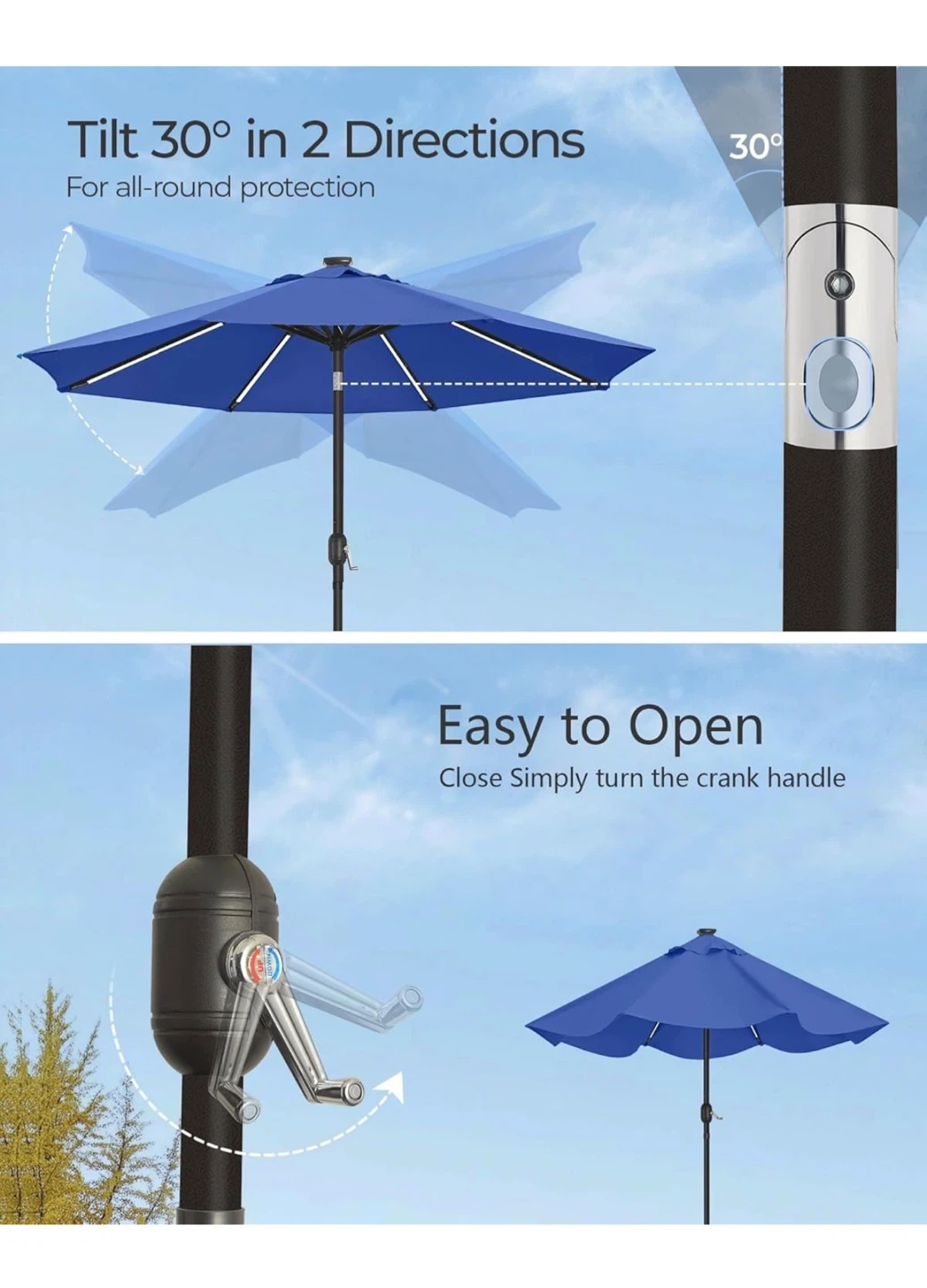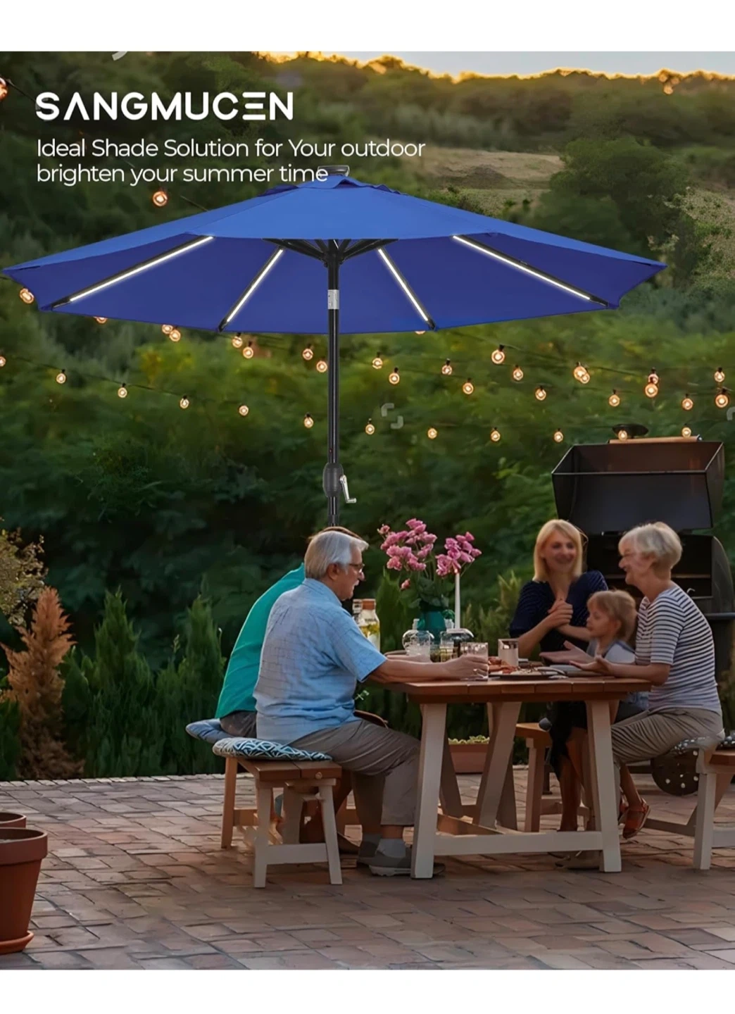 SANGMUCEN 9ft Patio Umbrella with LED Lights - Navy Blue