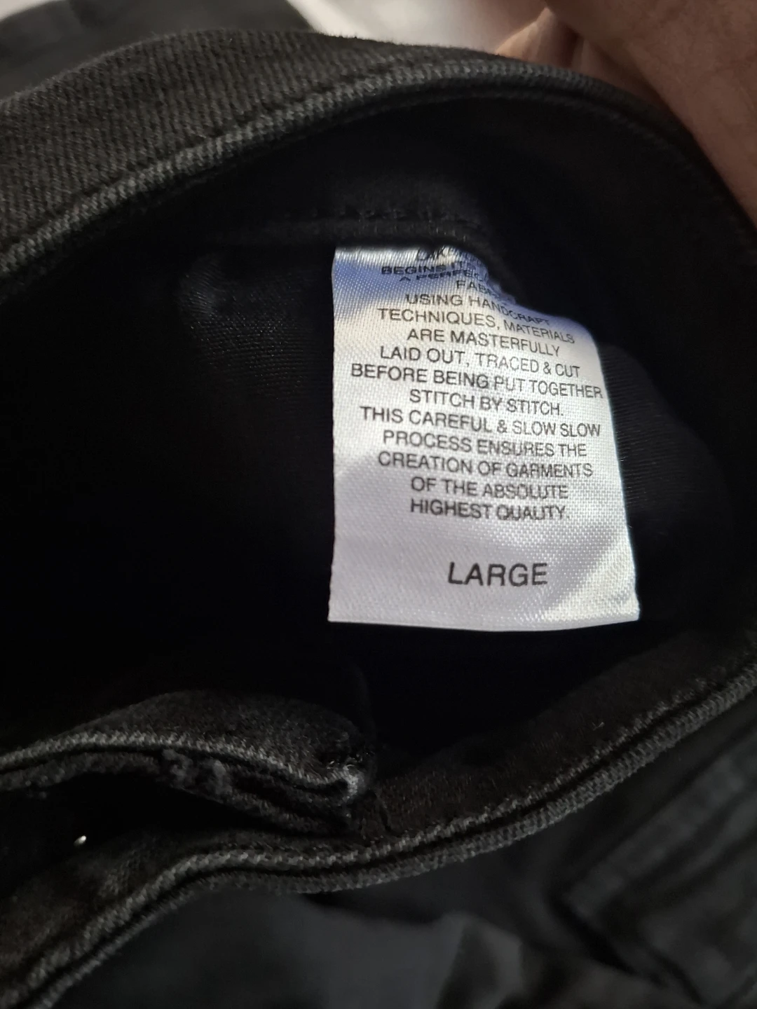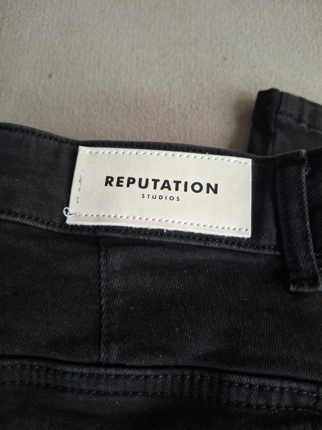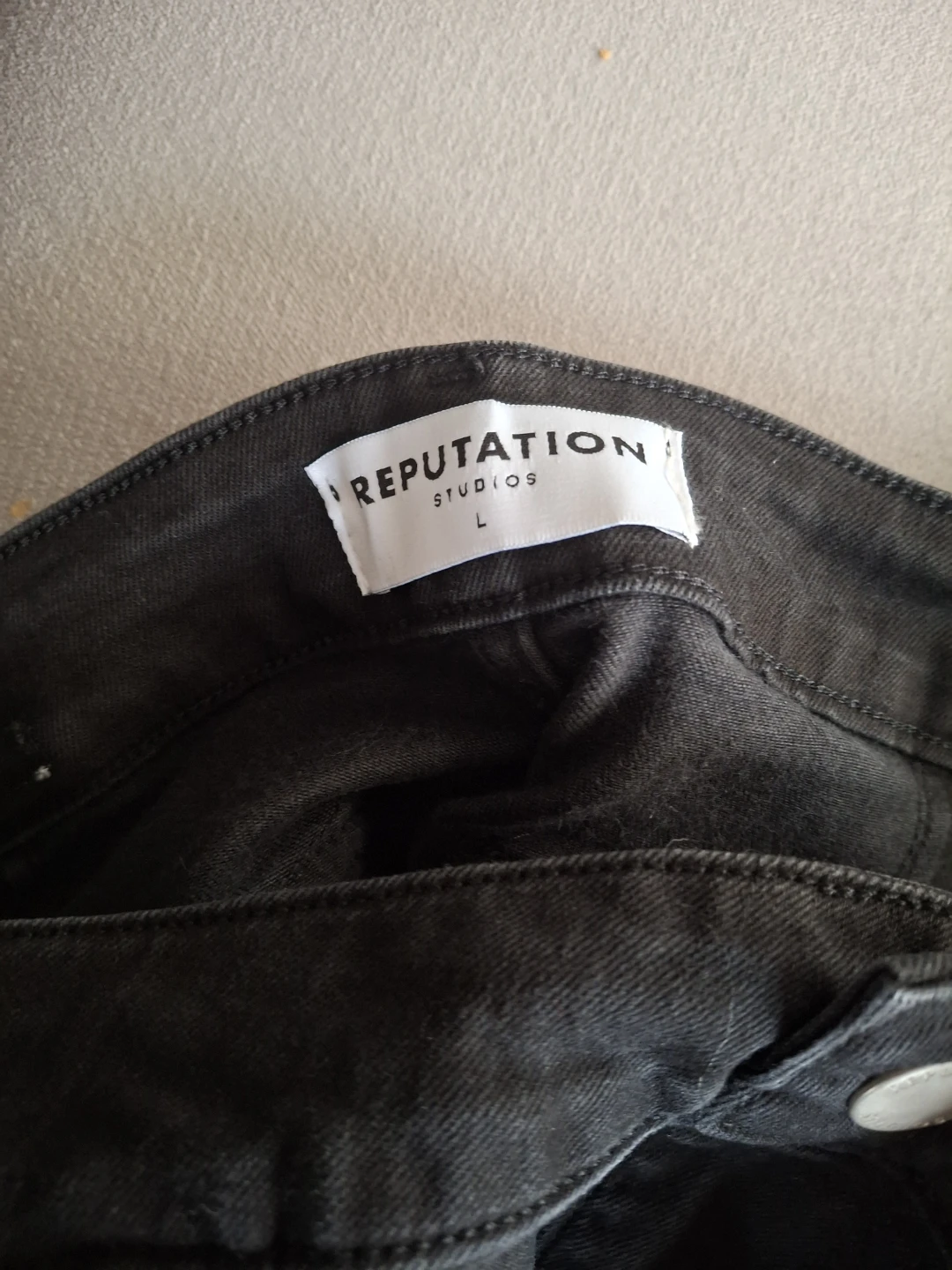 Reputation Studios cargo pants in black. Size large. Crafted using handmade techniques for the highest quality. These pants offer a comfortable and stylish fit.