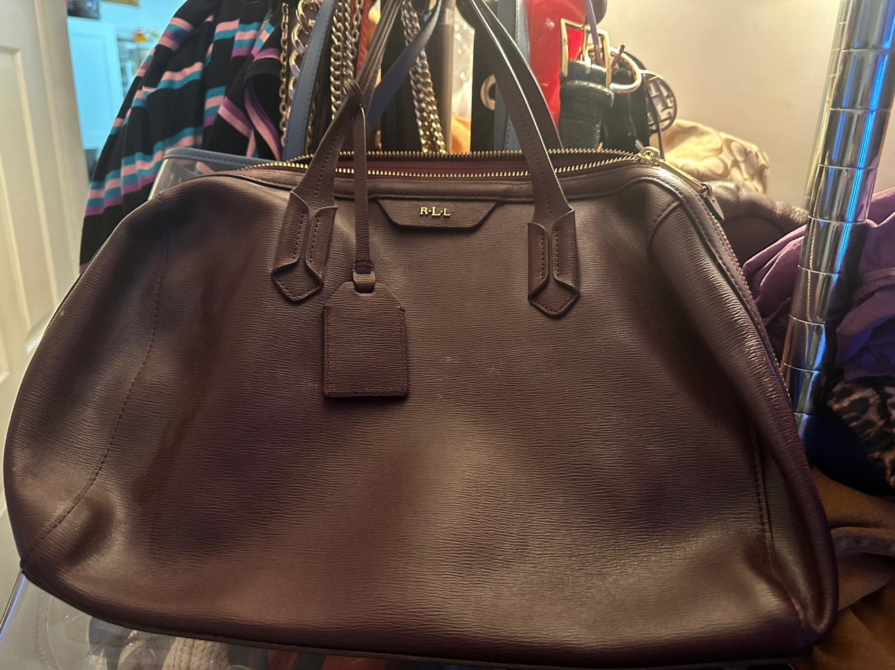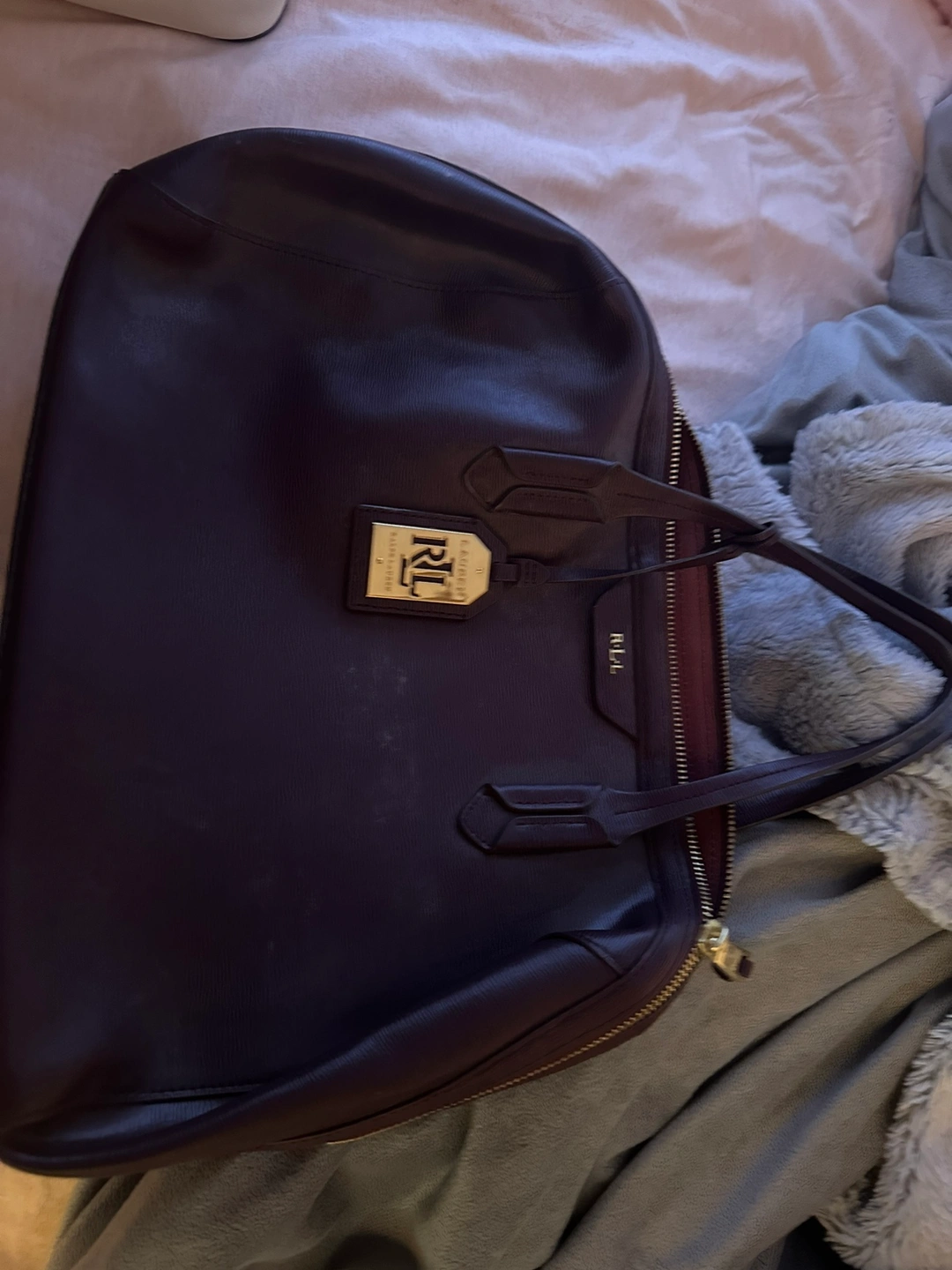 Burgundy leather handbag with gold accents. Only used for few months and comes with genuine leather