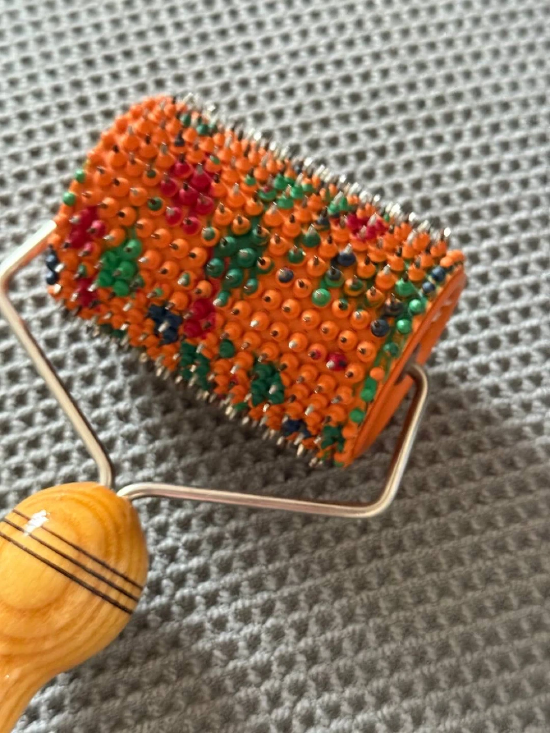 Material: Made from soft pliable rubber and 496 needles made from 5 different metals and a wooden handle