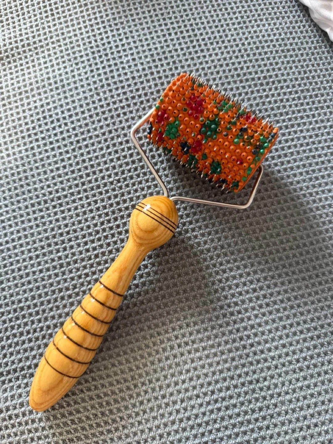 Material: Made from soft pliable rubber and 496 needles made from 5 different metals and a wooden handle