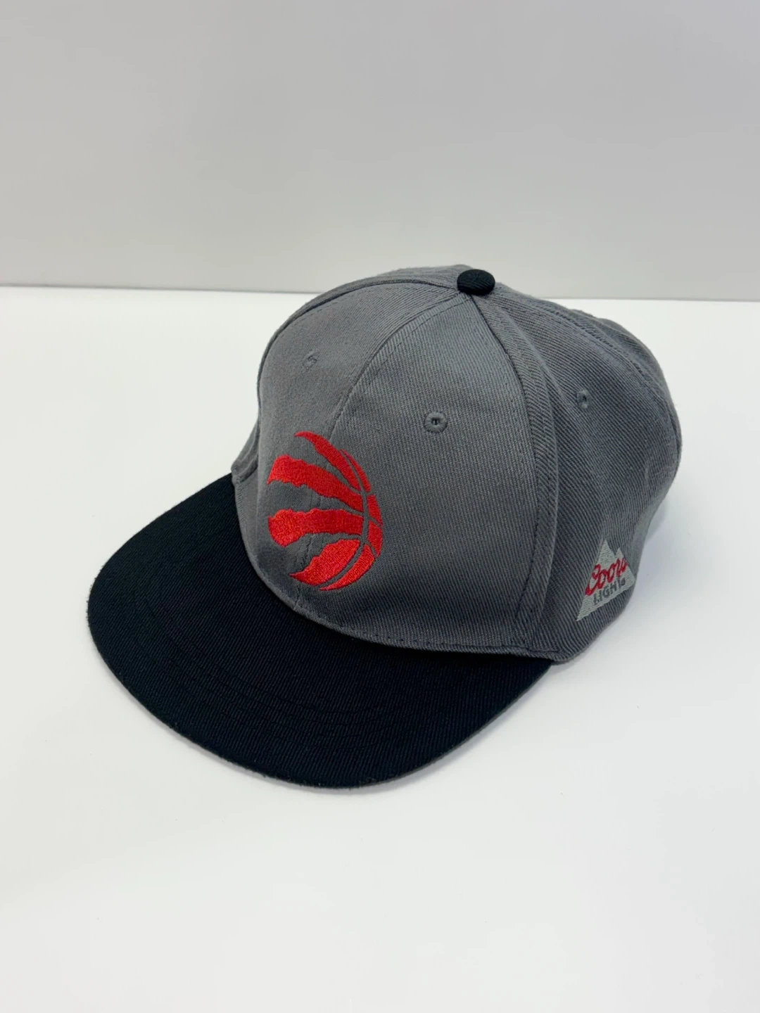 Grey and black snapback hat featuring the Toronto Raptors logo and Koors light logo.