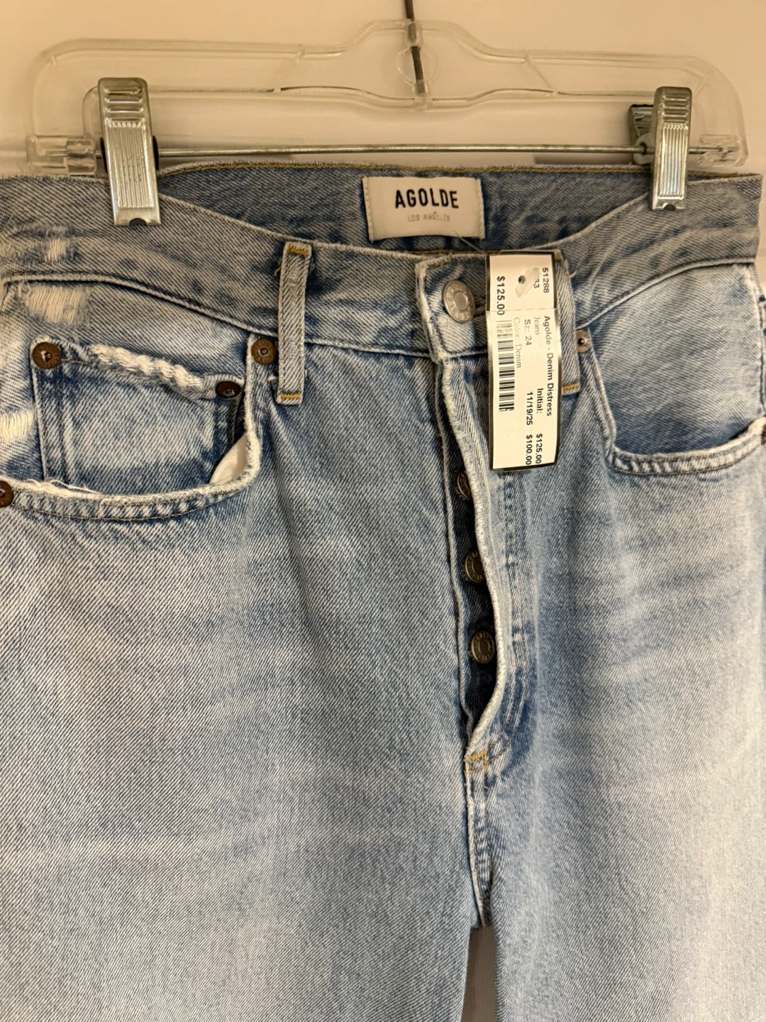 Buy & SellAGOLDE Denim Jeans Size 24 from AritziaAGOLDE Denim Jeans Size 24 from Aritzia$70AGOLDE light wash denim jeans with distressed knee details. Button fly closure. Size 24.ConditionLike newBrandAGOLDEWHERE TO MEETCheck LocationView MapSELLERverifiedAshManotick - North Gower44045 reviews0 chats·0 favorites·10 viewsSEND CHAT TO SELLERHi Ash! I’m interested in your listing.Hi Ash! I’m interested in your listing.Get the Karrot app to chatSign In to chat