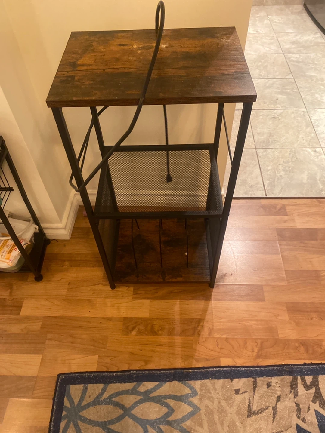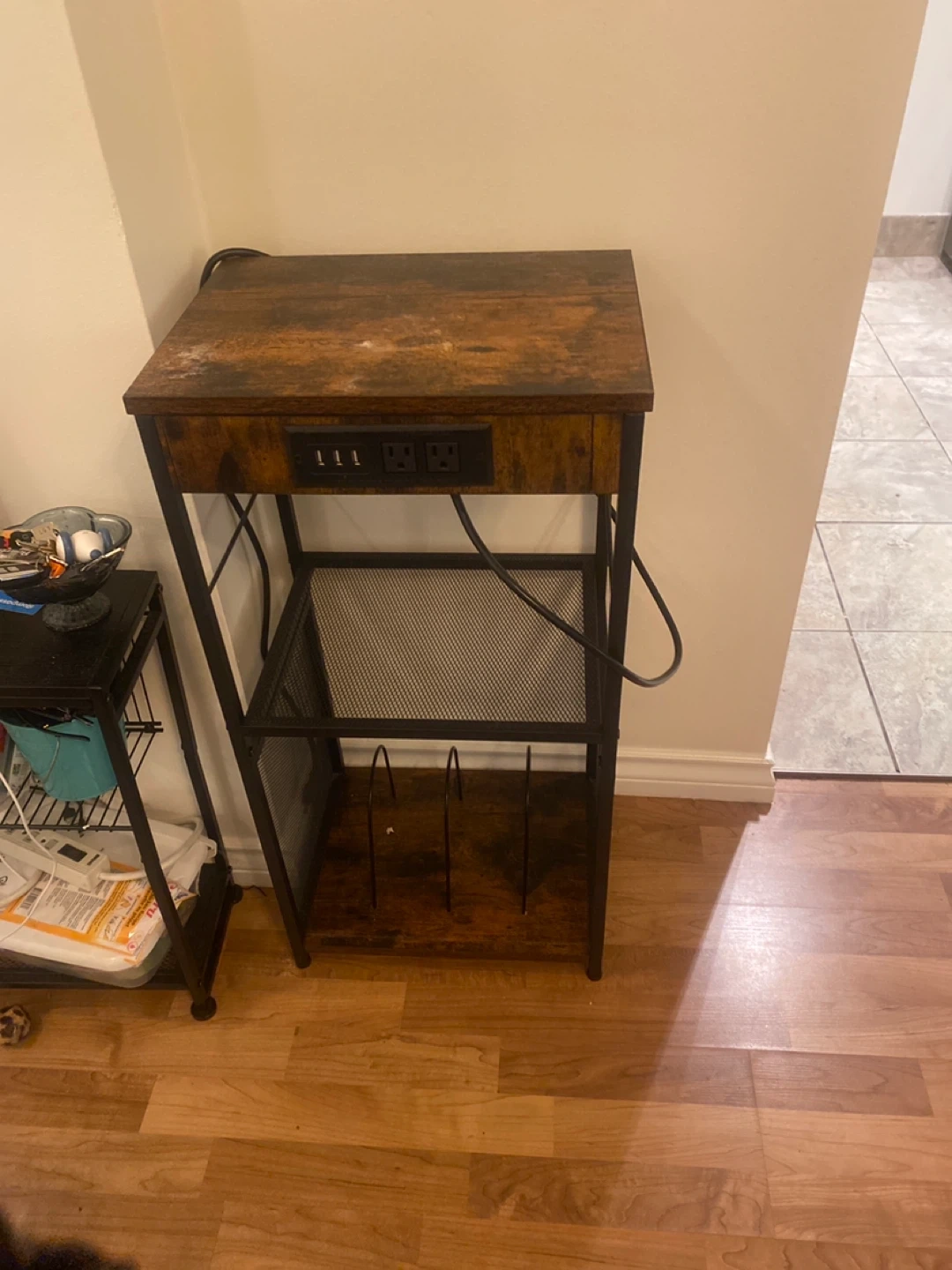 This is actually a record player stand with a place to plug in and usb outlets.