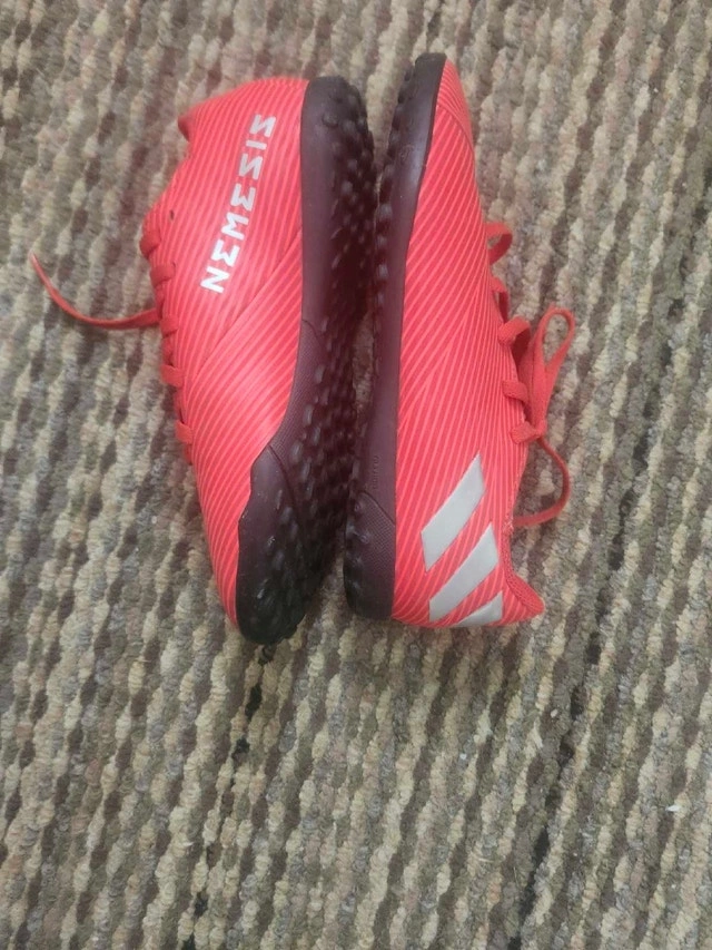 Selling these Adidas Nemeziz turf boots, they are practically brand new. They were purchased just before COVID and never used on the field, so they've been stored away. The grip is still perfect and they look great. Asking $20, but I'm open to offers if you can pick them up soon. A great opportunity to get some affordable cleats before summer🥕