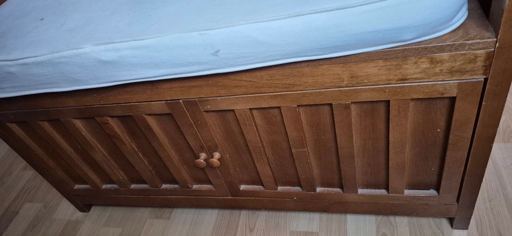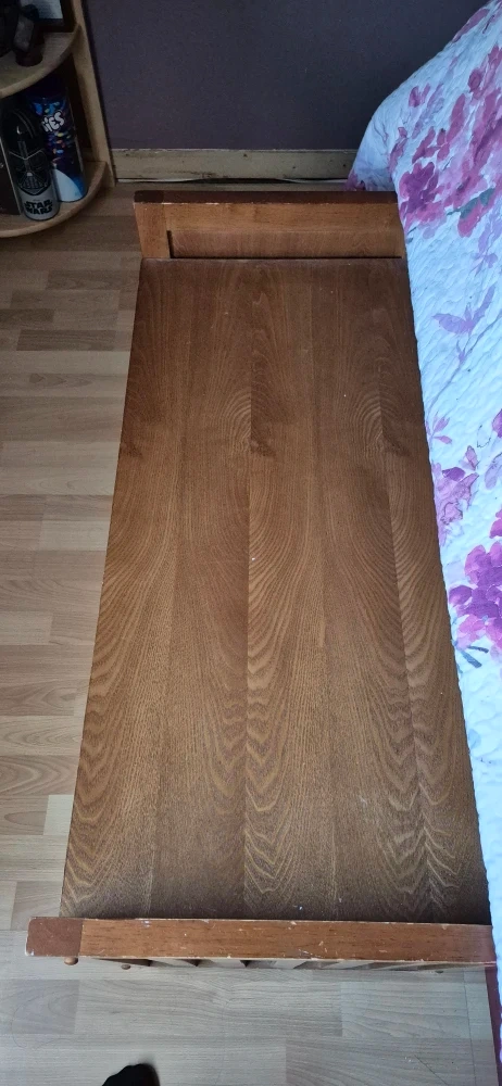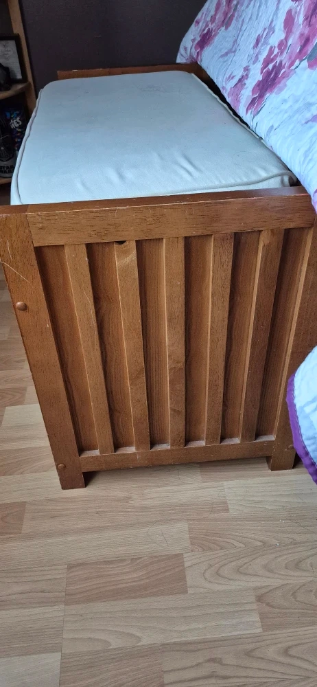Selling a lovely wooden daybed that also has storage underneath! It's in good condition and would be perfect for a guest room or living room. The wood has a nice warm tone, and the storage space is super handy for blankets or pillows. Feel free to message me with any questions!