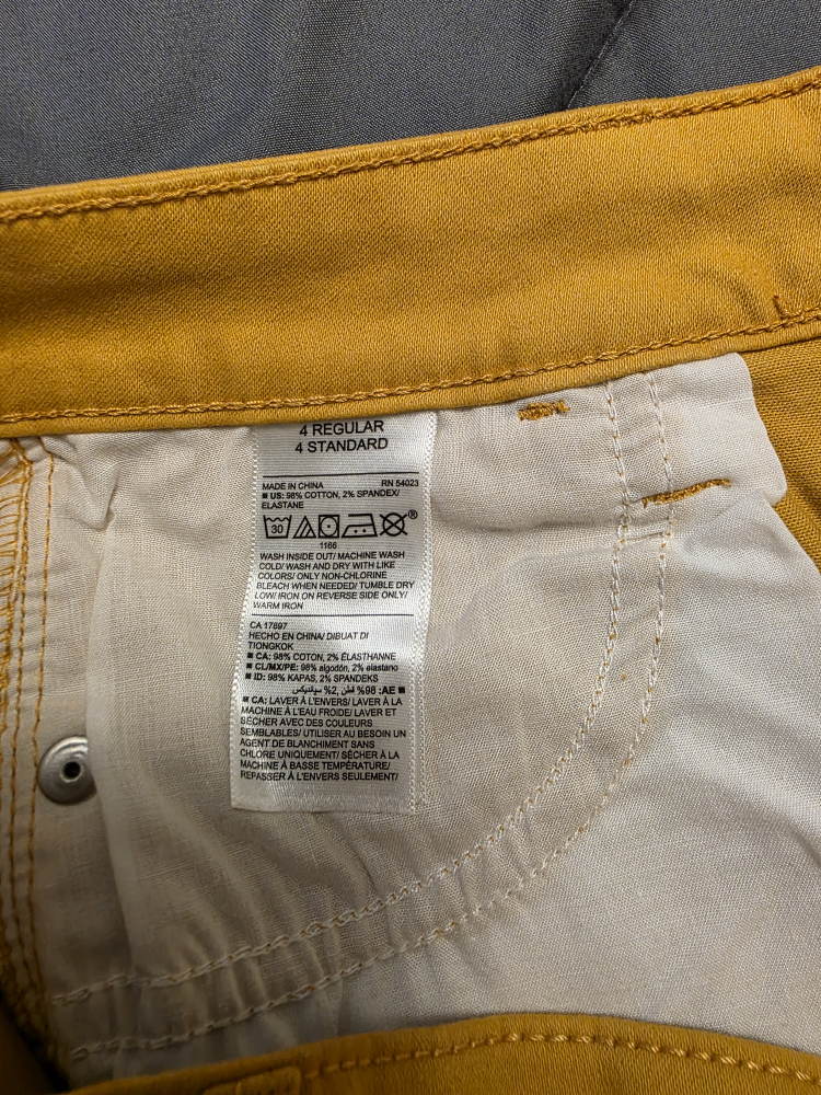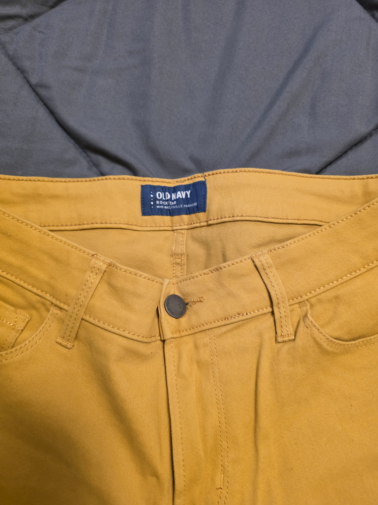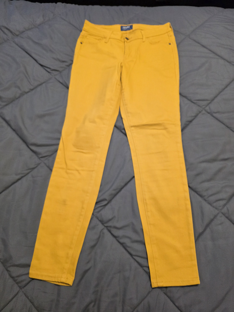 Selling a pair of Old Navy Rockstar skinny jeans in a mustard/gold colour! These are a size 4 regular. The material is a comfy blend of 98% cotton and 2% spandex