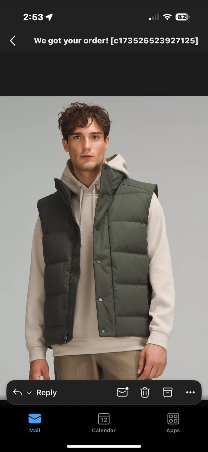 Snag this Lululemon Wunder Puff Vest! It's a men's vest in a nice olive green color. It's perfect for layering during those in-between seasons. Great for adding a bit of warmth without the bulk of a full jacket