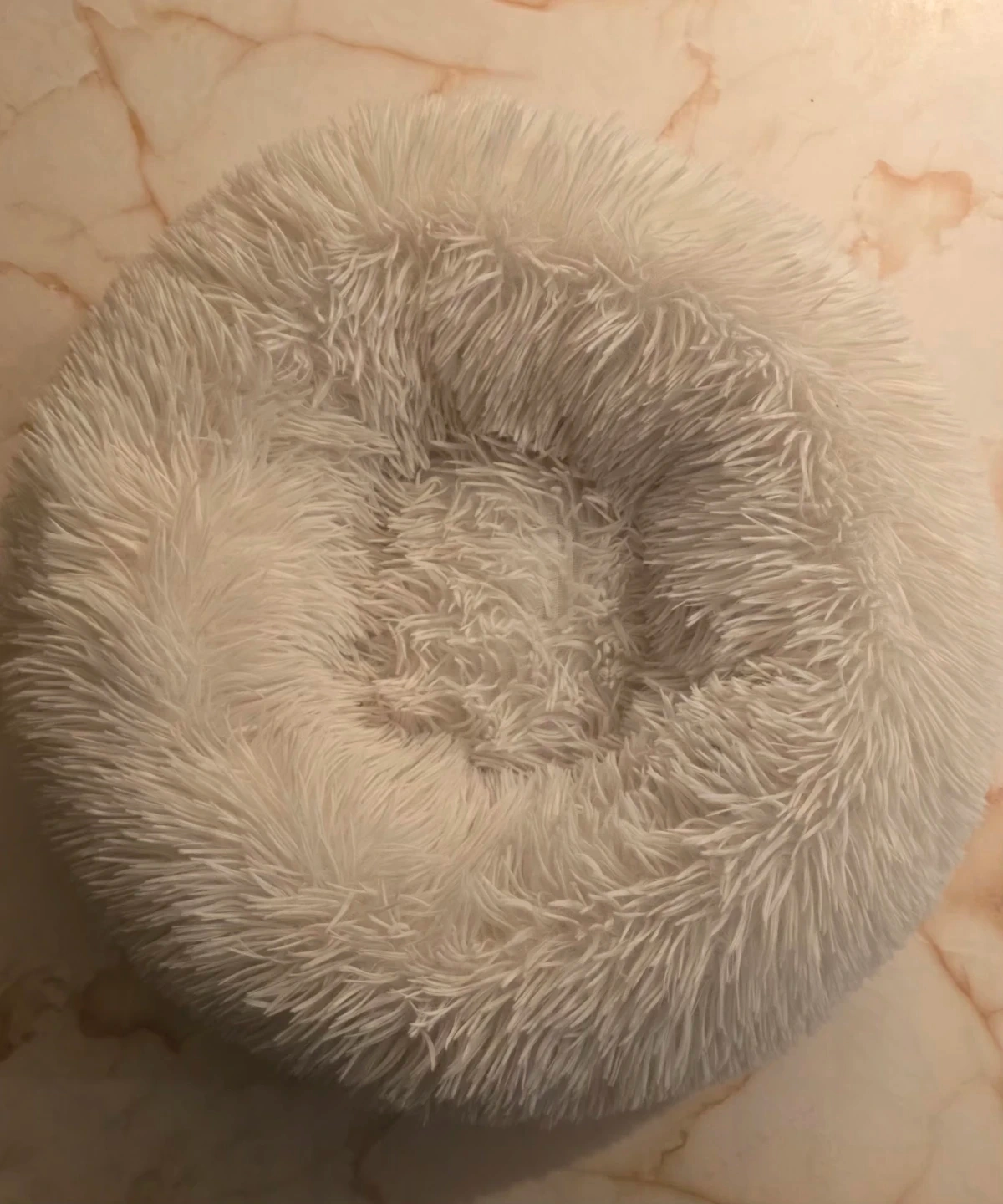 Super soft and cosy round pet bed. It's made with a plush, fluffy material that's calming for pets. Provides a comfortable spot for your furry friend to rest. Great for small to medium-sized pets!