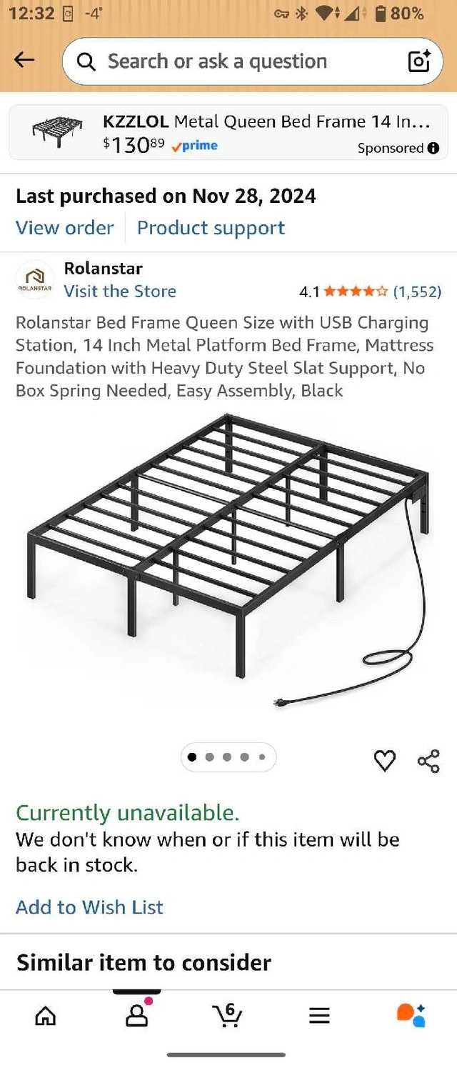 Selling a used Rolanstar Queen Size Bed Frame in good condition. It features a 14-inch metal platform with a built-in USB charging station and heavy-duty steel slats, so no box spring is needed. It's easy to assemble, and I'll unassemble it into a single box for you to fit in your trunk. Similar frames sell for $100-$200. Let me know if you're interested!
