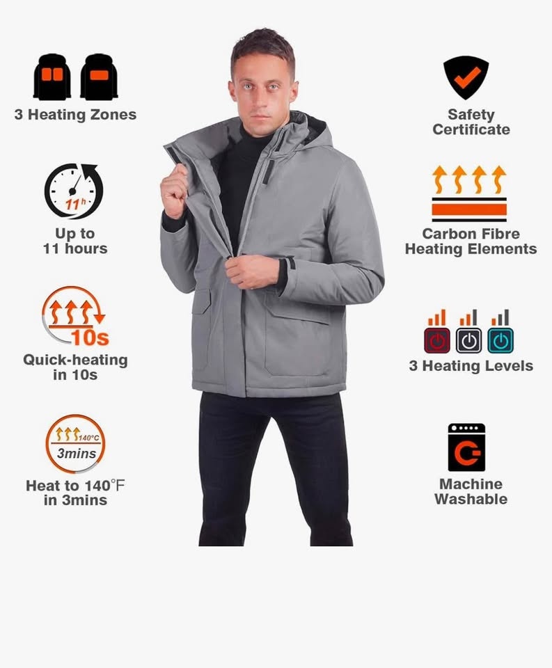 Heated Hooded Jacket with Battery and Charger (Unisex)