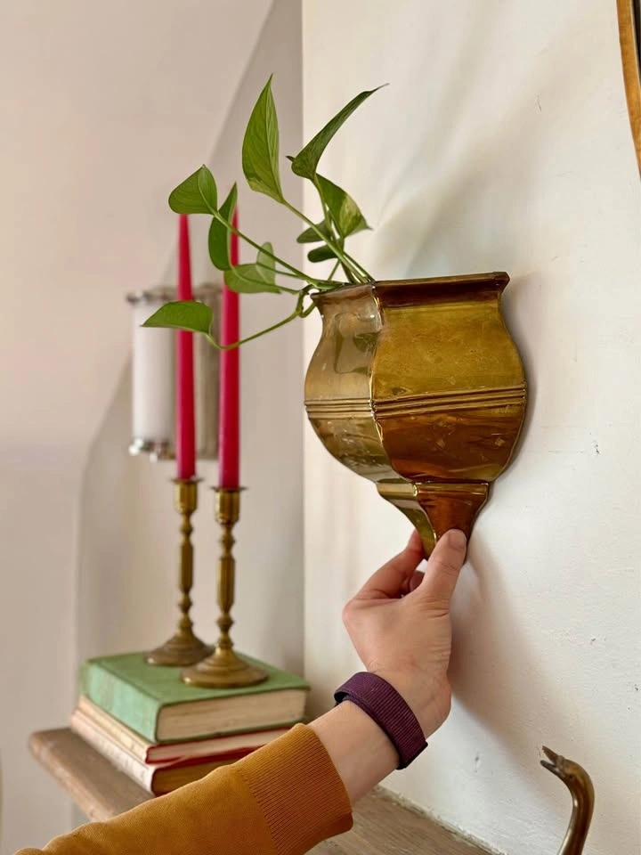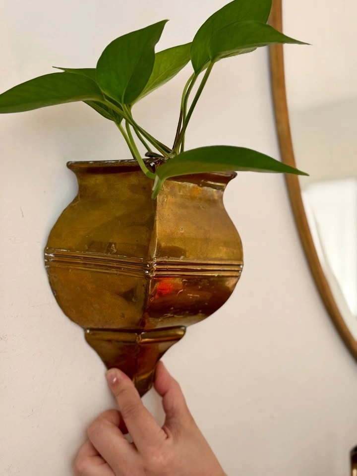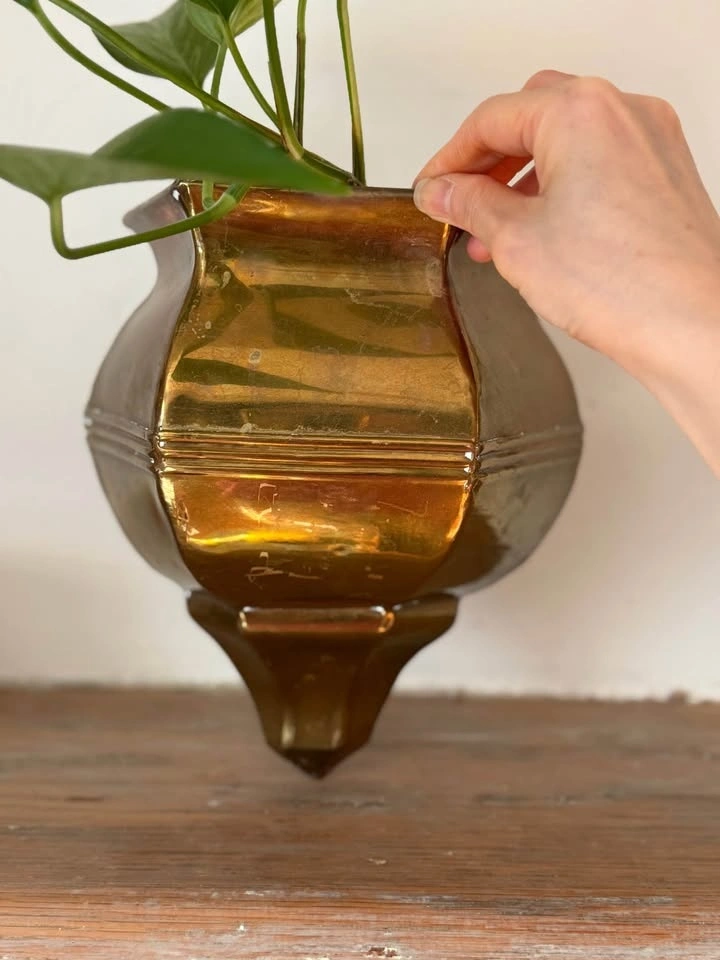 Vintage Brass Wall Pocket Planter - Made in India - Boho