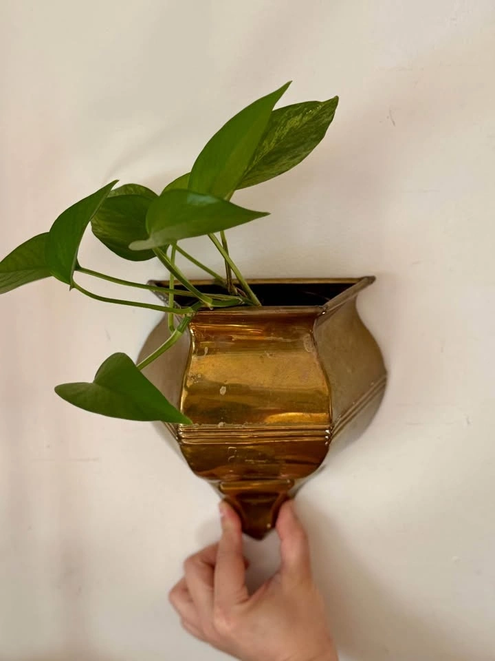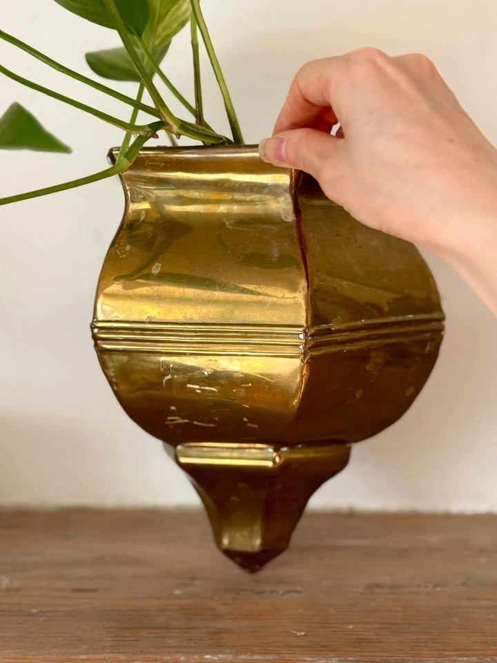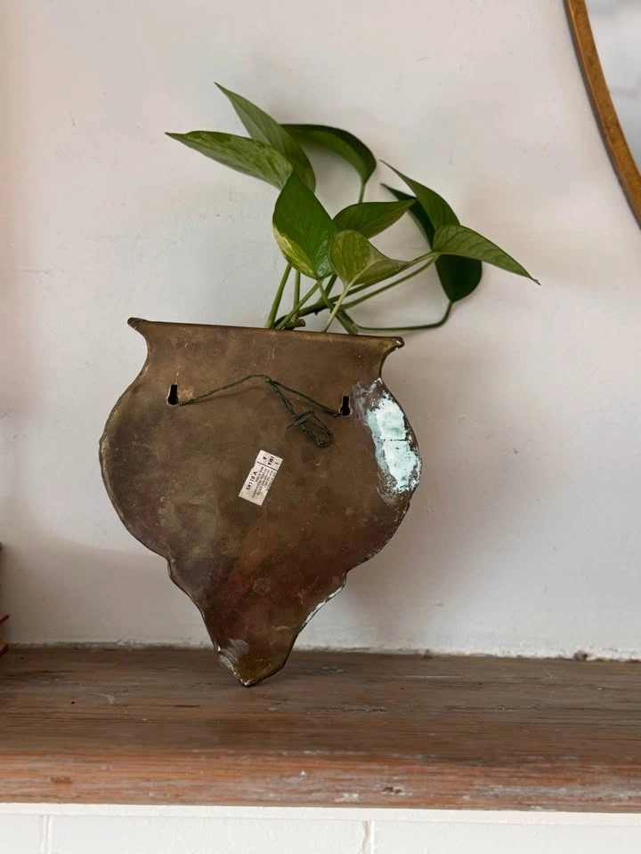Vintage Brass Wall Pocket Planter - Made in India - Boho