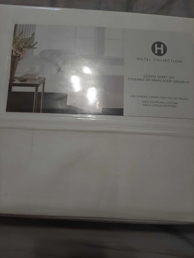 Hotel Collection 600 Thread Count Egyptian Cotton 4-Piece Sheet Set Queen Fresh White color. Brand new, only 150 dollars.