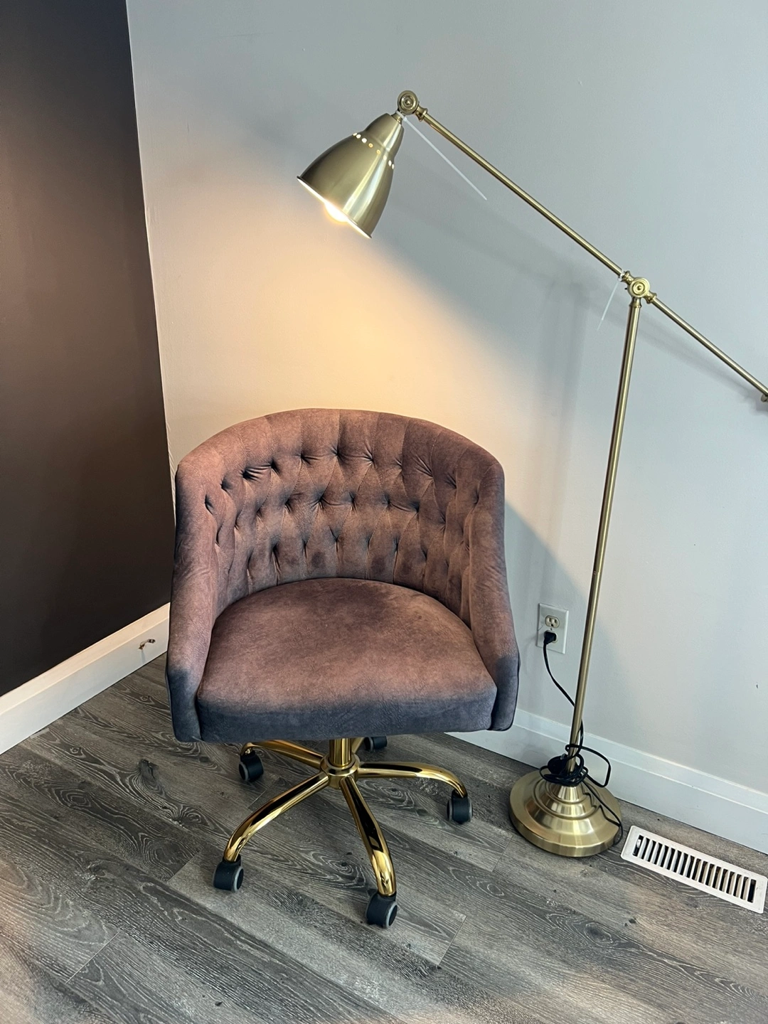 Tufted Swivel Office Chair - Velvet, Grey & Gold