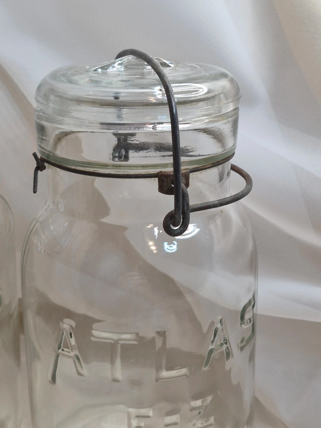 Pair of Vintage Clear Atlas E-Z Seal Wire Bail Quart Canning Jar w/Lids 1930’s - 1 Lt / 34 oz - Great Vintage Condition Selling both together Please See all pictures