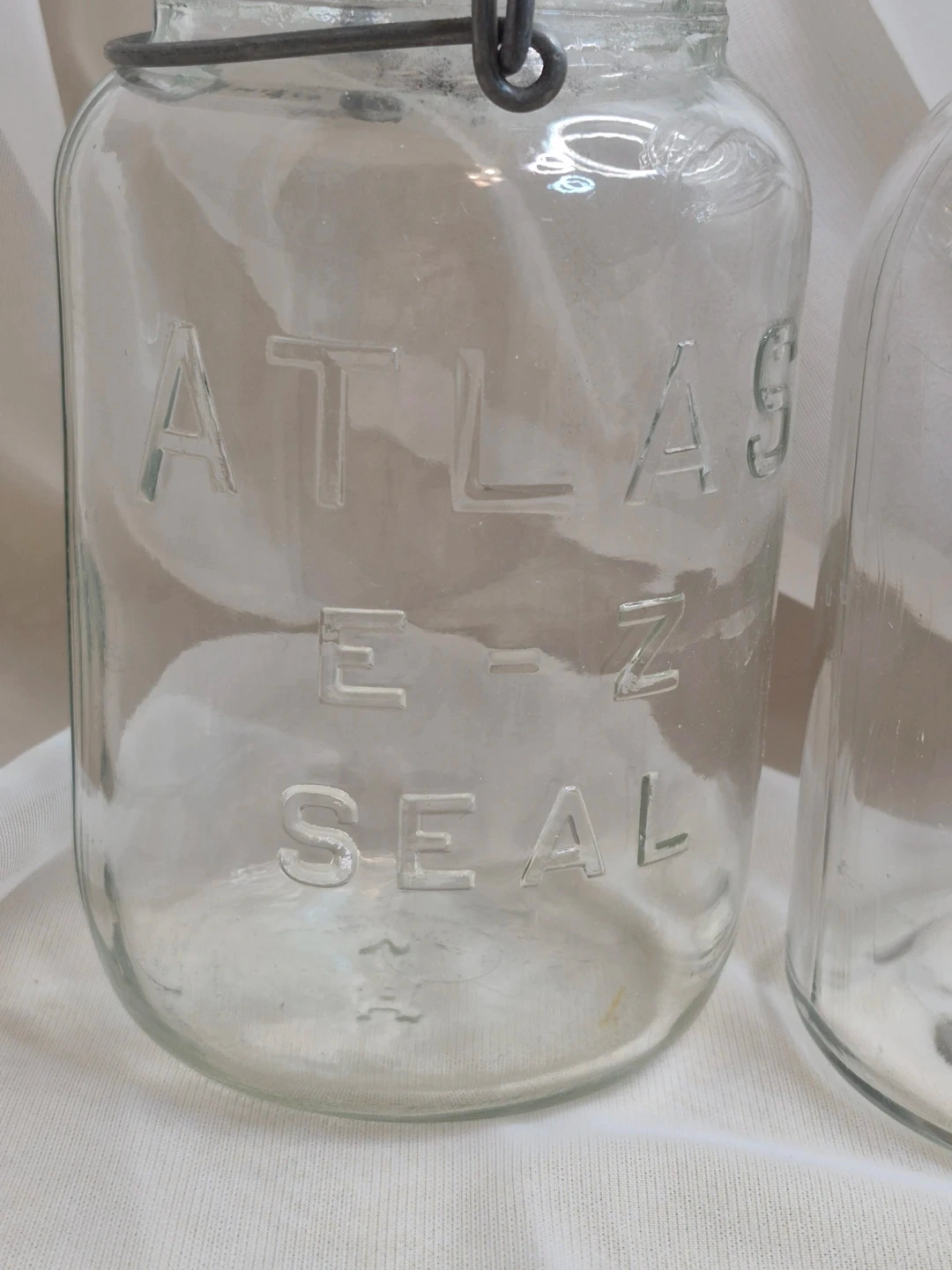 Pair of Vintage Clear Atlas E-Z Seal Wire Bail Quart