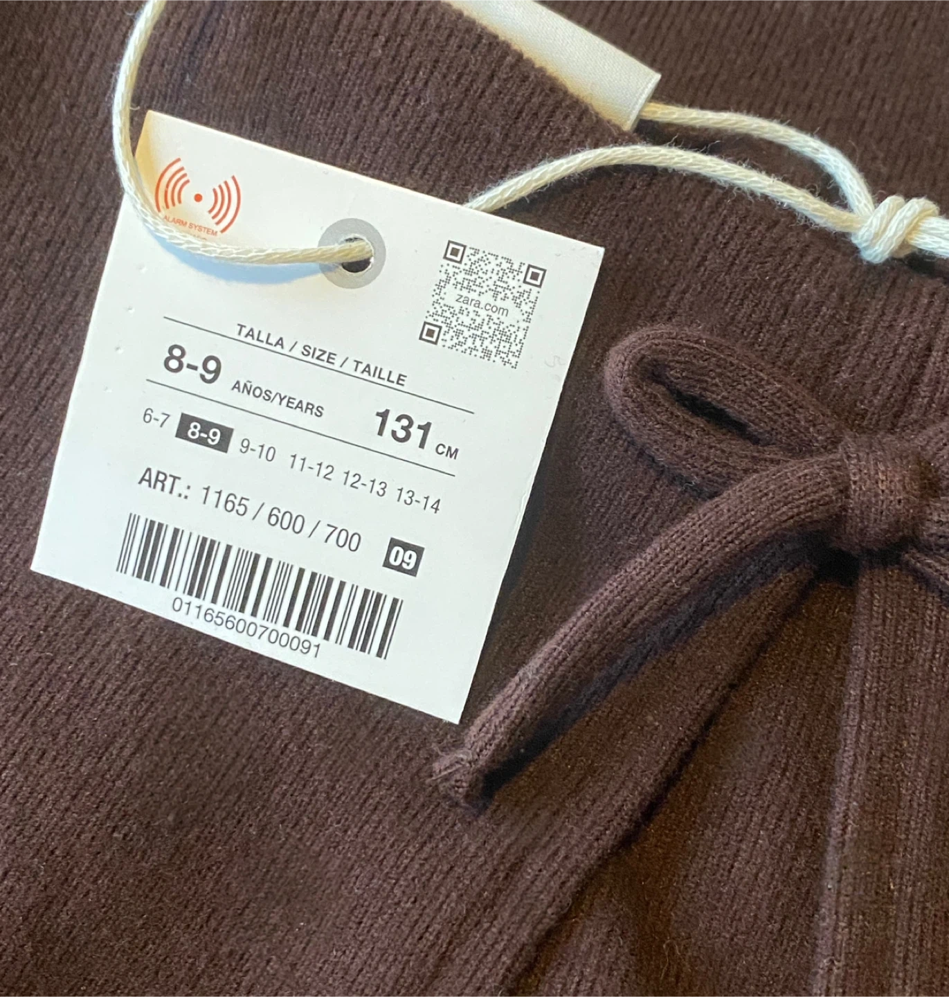 NEW! ZARA Girls Brown Pearl Bow Knit Sweater & Skort