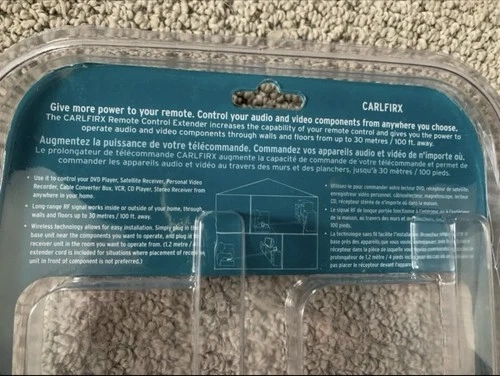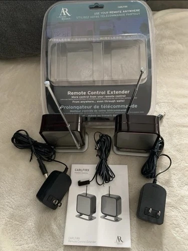 Increase the range of any infra-red remote control up to 100ft/30m with the Acoustic Research remote control extender. The long-range RF signal works inside or outside of your home, through walls and floors up to 100 feet away. Can be used for home electronics including TV, DVD, PVR, Satellite or Stereo Receiver, Cable Box, and more. Includes a 4ft IR extension cable that allows you to control up to 3 devices that are hidden from view. AR's wireless technology offers a simple solution and easy installation, plus it is compatible with most infrared equipment.