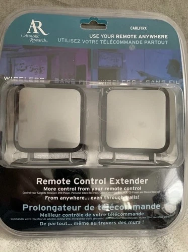 Increase the range of any infra-red remote control up to 100ft/30m with the Acoustic Research remote control extender. The long-range RF signal works inside or outside of your home, through walls and floors up to 100 feet away. Can be used for home electronics including TV, DVD, PVR, Satellite or Stereo Receiver, Cable Box, and more. Includes a 4ft IR extension cable that allows you to control up to 3 devices that are hidden from view. AR's wireless technology offers a simple solution and easy installation, plus it is compatible with most infrared equipment.