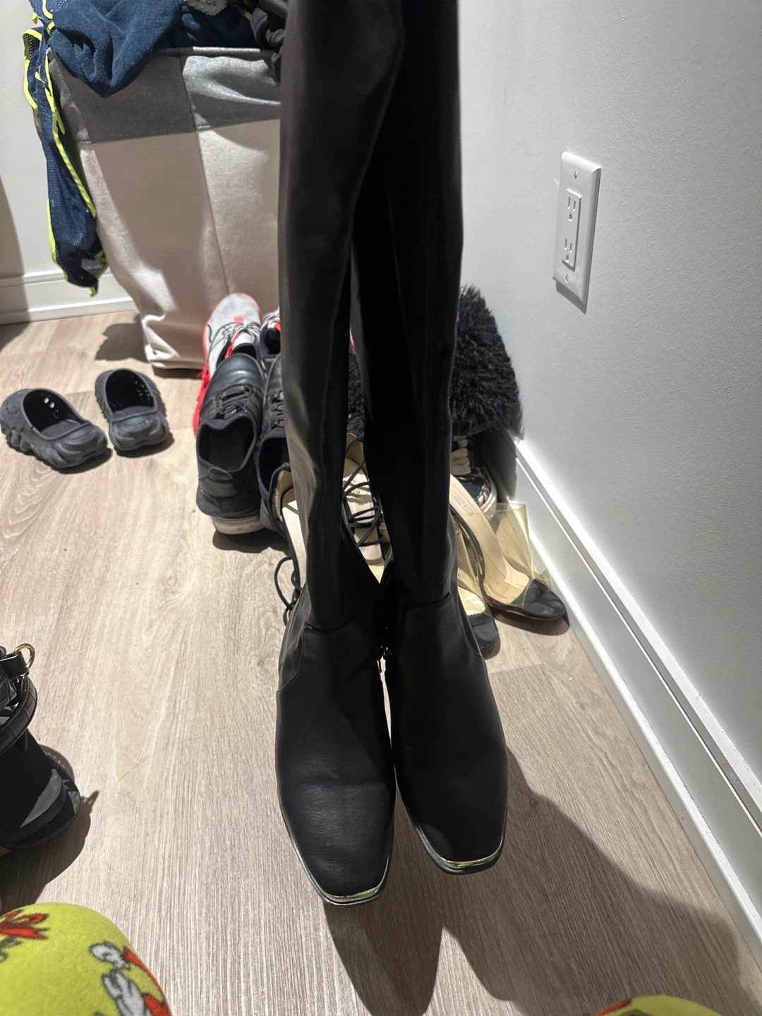 Black Leather Boots with Silver Toe Cap