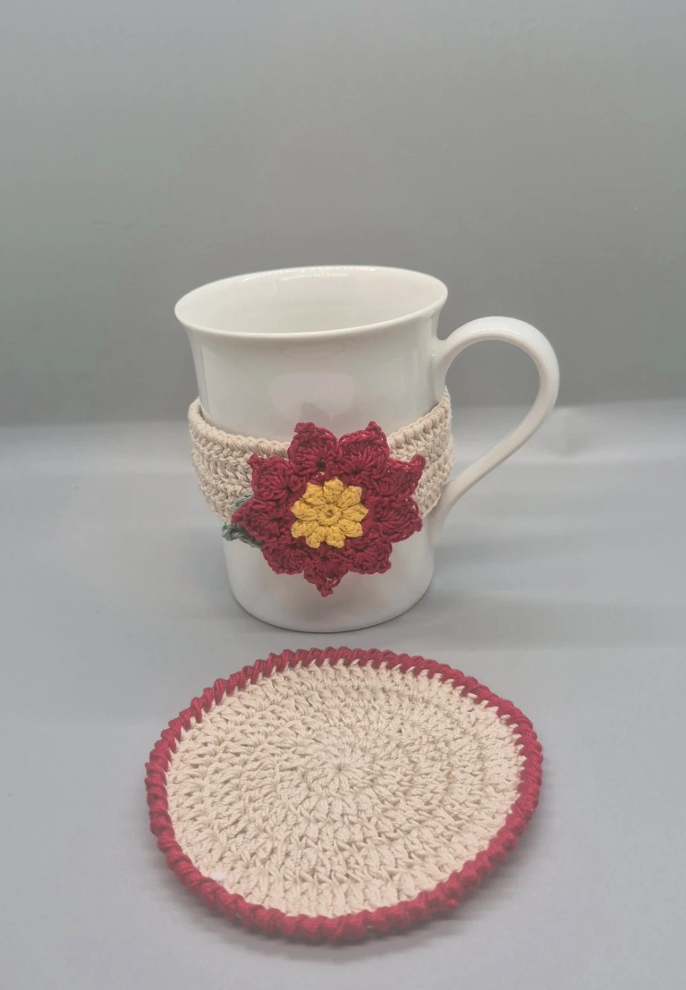 Handmade Crochet Mug Cozy and Coaster Set