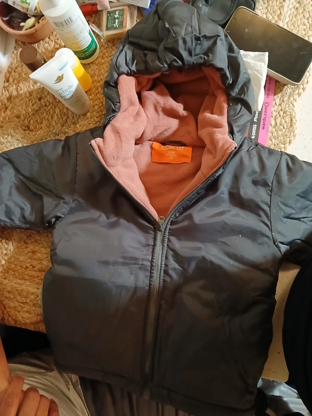 I'm selling a Carter's winter jacket in size 3T! It's a gray color with a pink fleece lining. Perfect for keeping your little one warm this winter