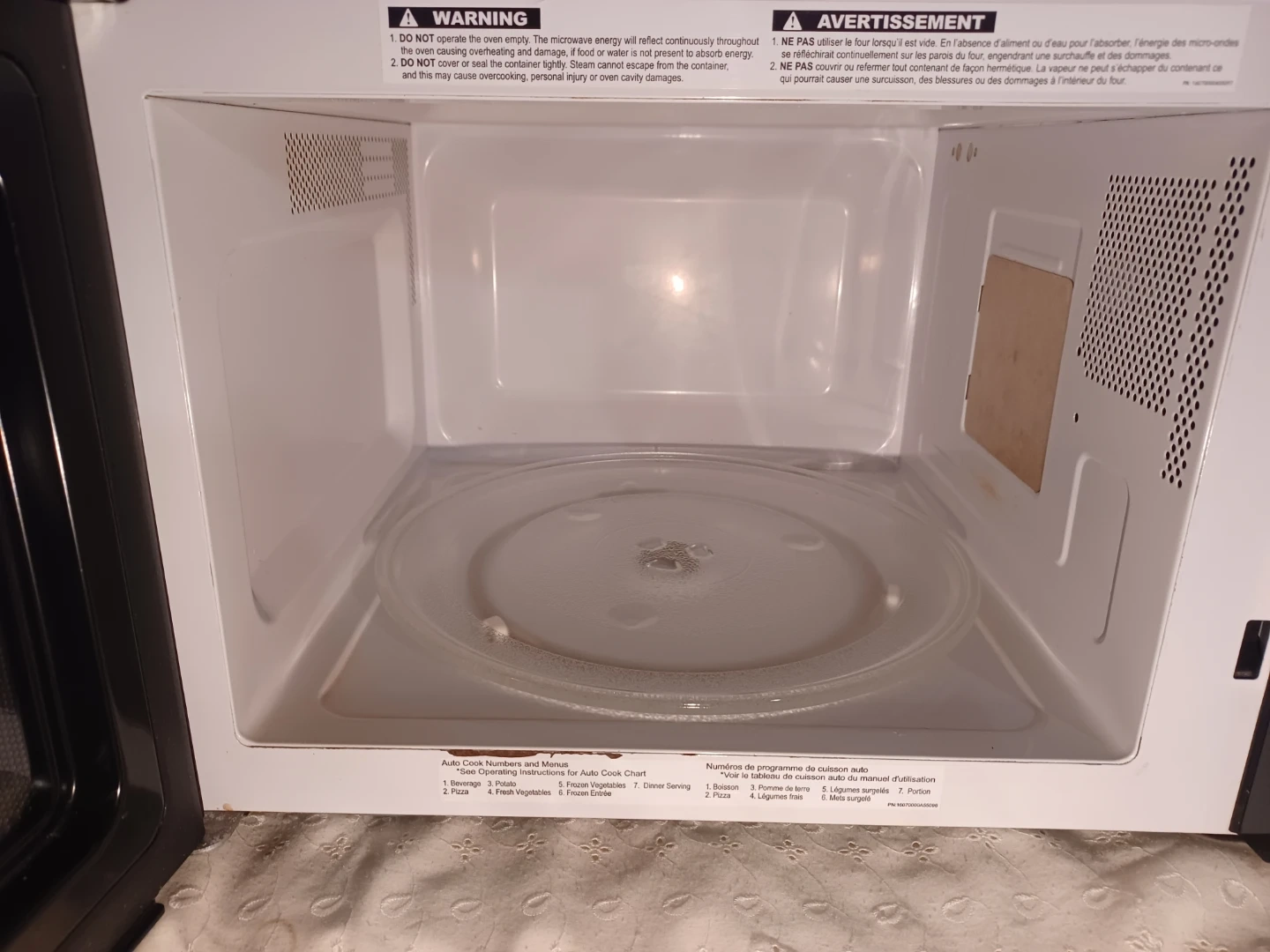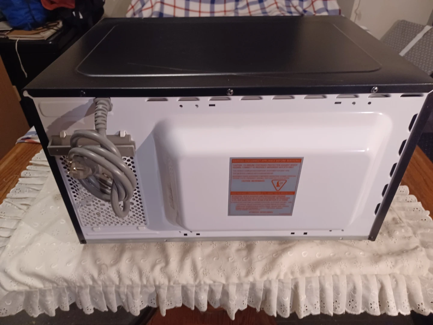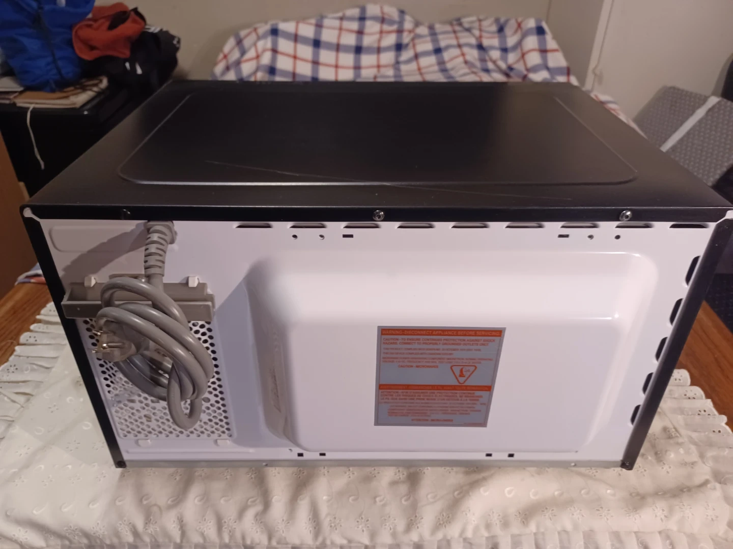 This is a black Panasonic microwave. It features 11000W high power with various auto cook functions. Great for quick meals and reheating leftovers! Very clean. Silent sound.