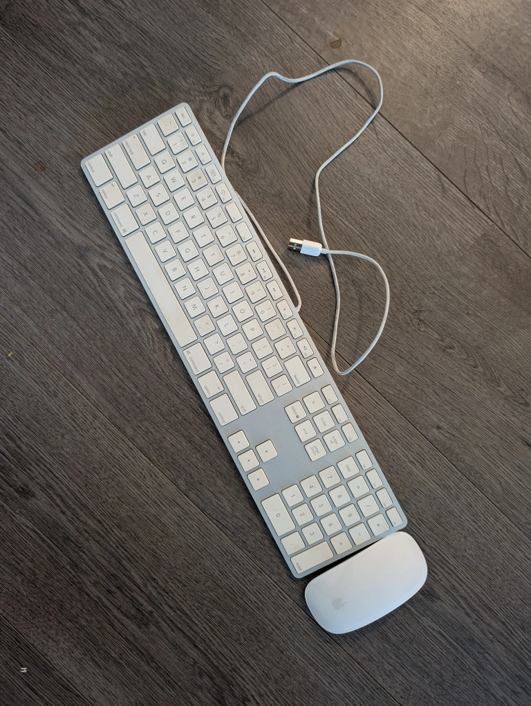 Selling a variety of items including a cosmetic organizer with drawers, a black mouse, an Apple keyboard, a hair brush, and a bidet set