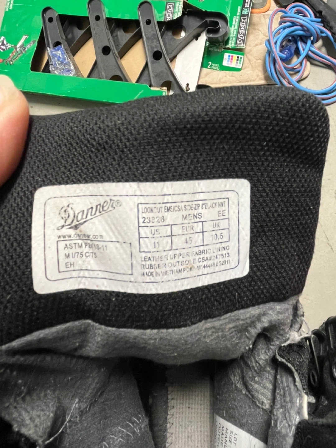 Selling a pair of Danner Lookout EMS/CSA ST 28 PT black work boots. They feature Danner's Comfort System (DCS) and are size 11 US, 45 EUR, and 10.5 UK. These boots are durable and ready for work!