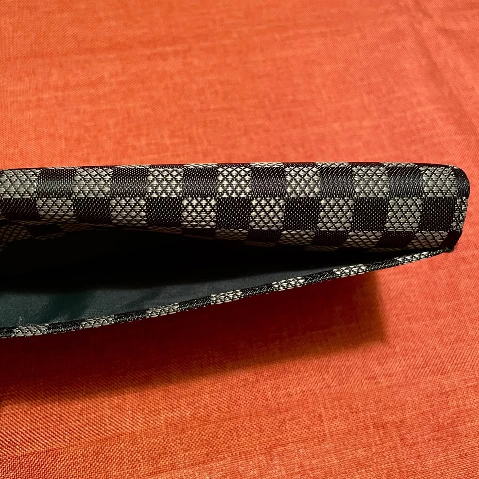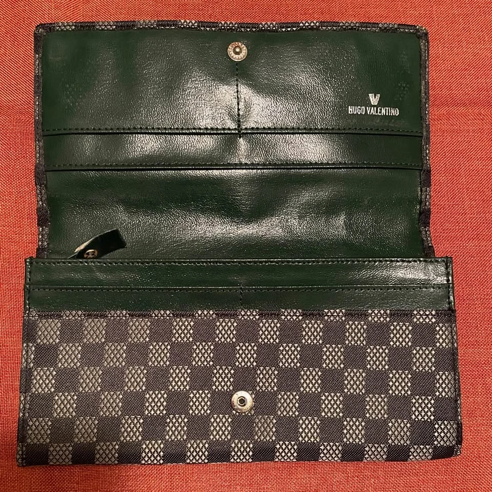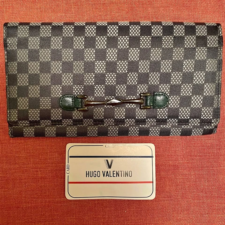 Stylish checkered wallet by Hugo Valentino in a classic black and gray pattern.