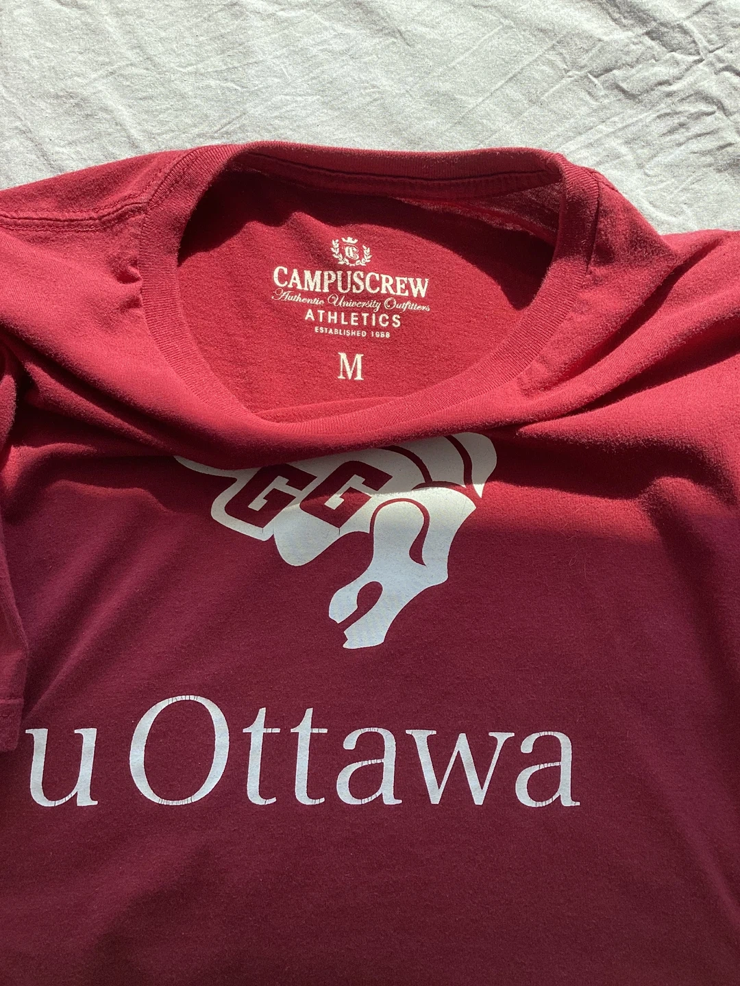 Maroon uOttawa Gee-Gees t-shirt. Size medium. Made by Campuscrew Athletics. Outgrown would also trade for a large large or XL optionally