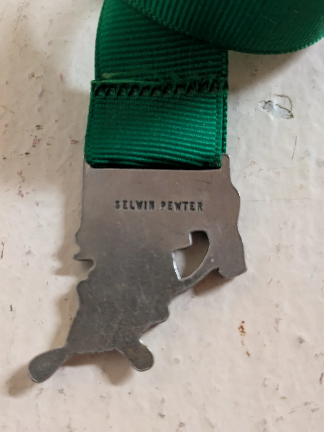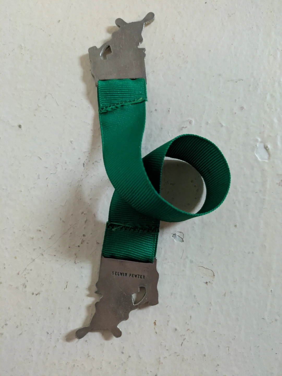 Vintage Selwin Pewter Bookmark with Green Ribbon