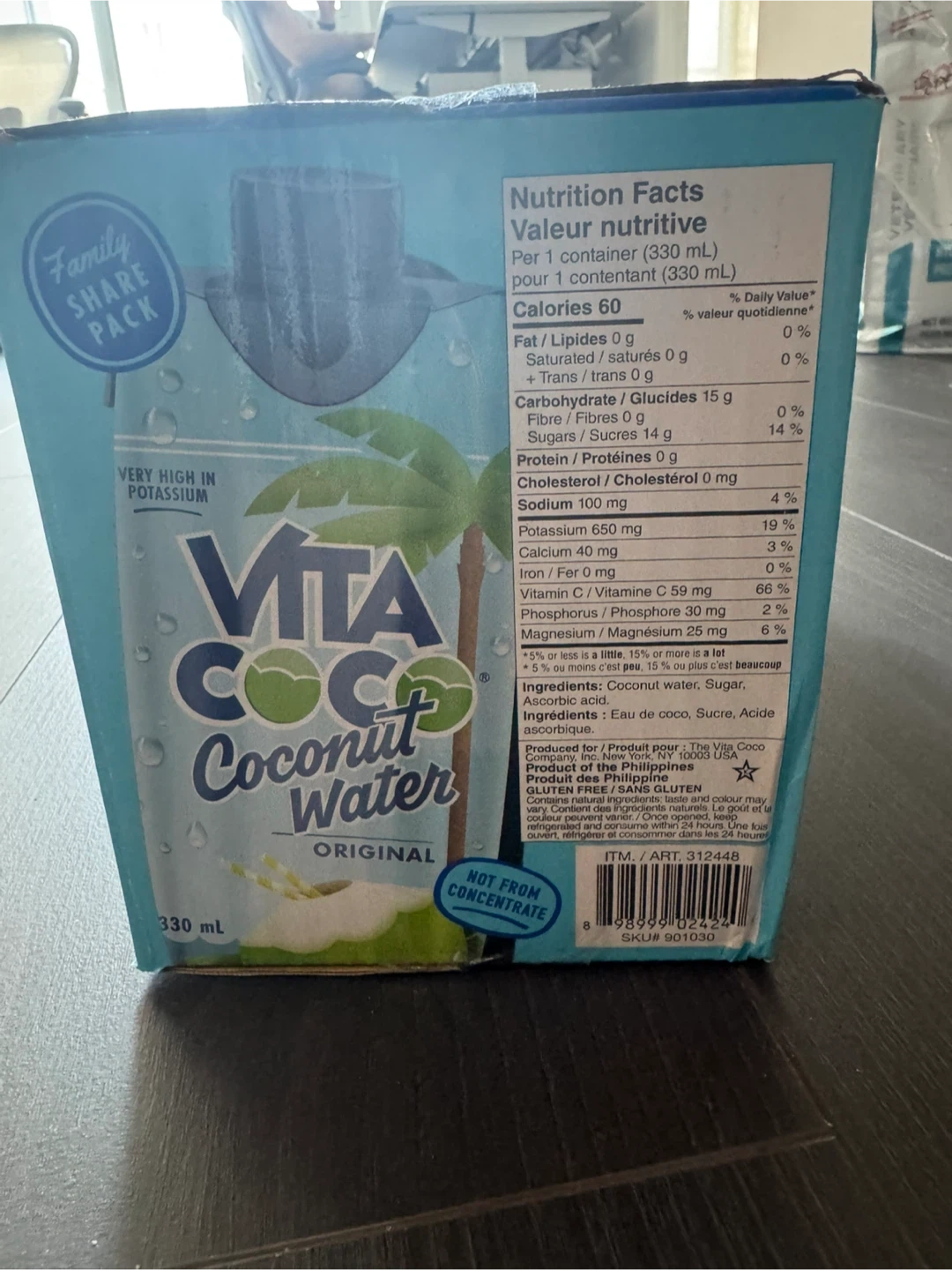 Buy & SellCoconut water 12 pack (unopened)Coconut water 12 pack (unopened)$5Retails for $21-22. Expires August this year.ConditionNewDimensions130 mL eachWHERE TO MEET575 Queen St WView MapSELLEREileenFashion District66459 reviews2 chats·2 favorites·22 viewsSEND CHAT TO SELLERHi Eileen! I’m interested in your listing.Hi Eileen! I’m interested in your listing.Get the Karrot app to chatSign In to chat