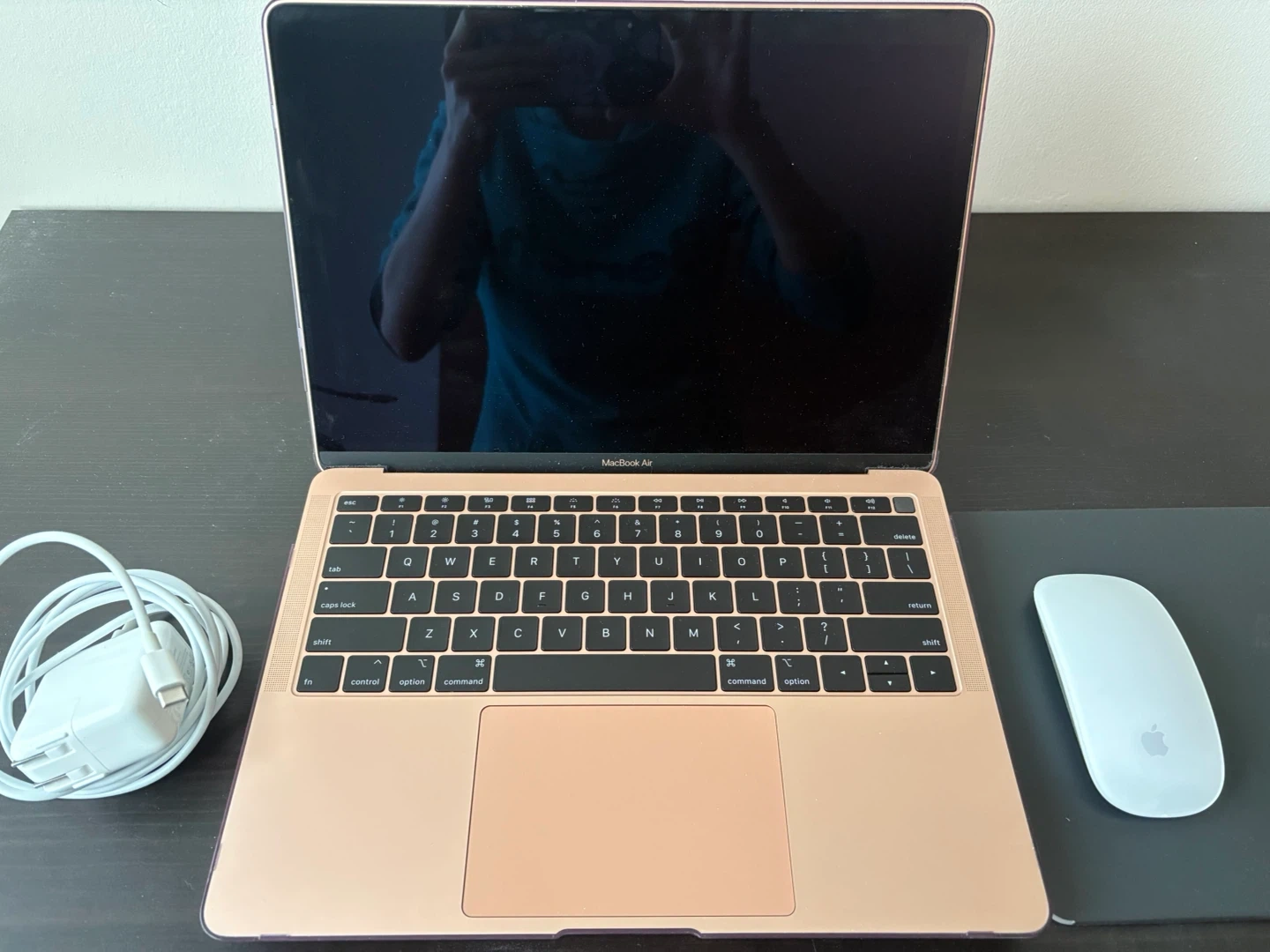 2019 MacBook Air (rose gold) in like new condition (barely used).