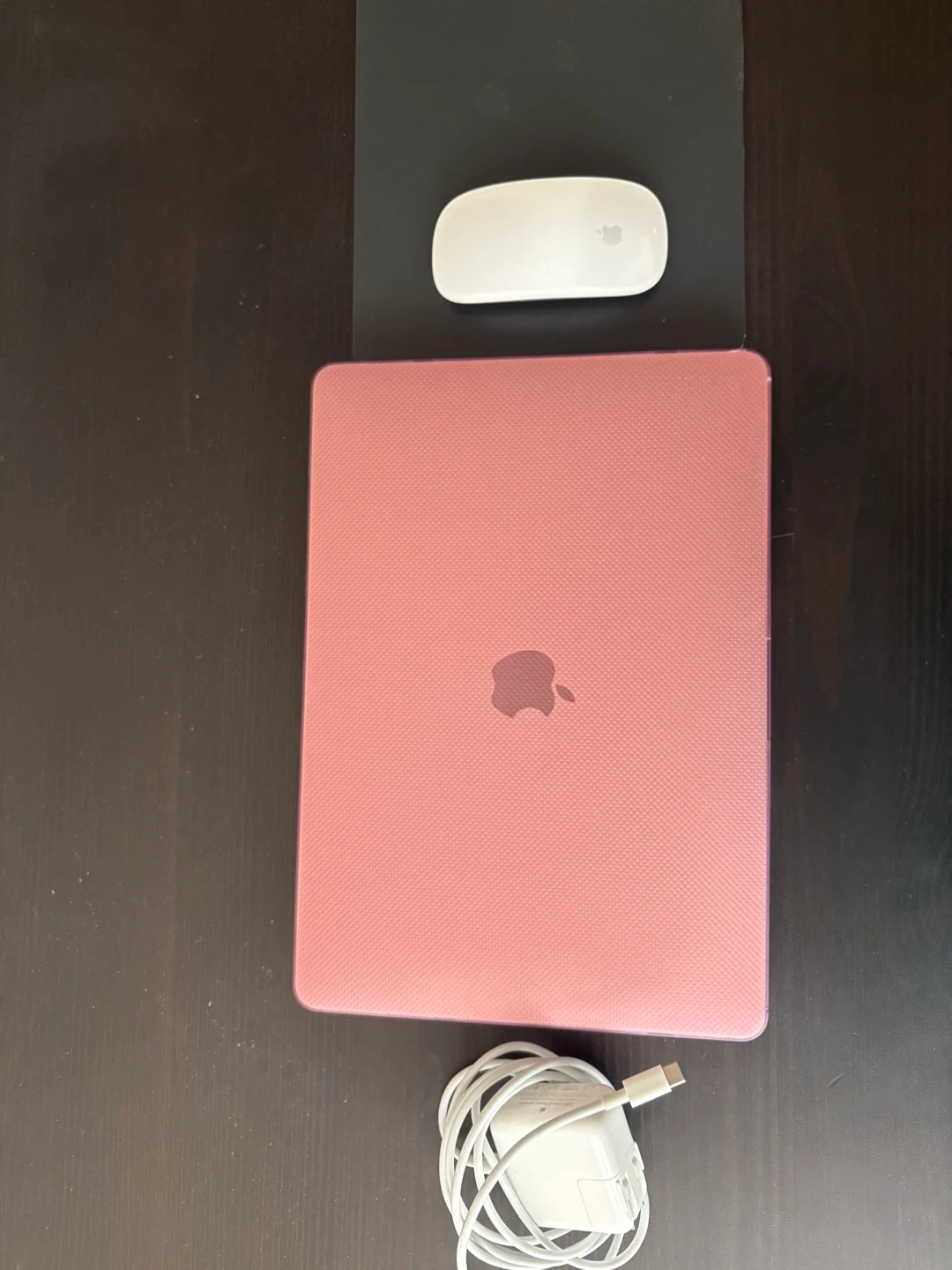 Comes with accessories: Apple Magic Mouse, mousepad + mouse sliders (to prevent scratching, both moonimal brand), charger, keyboard cover, hard shell case for laptop.