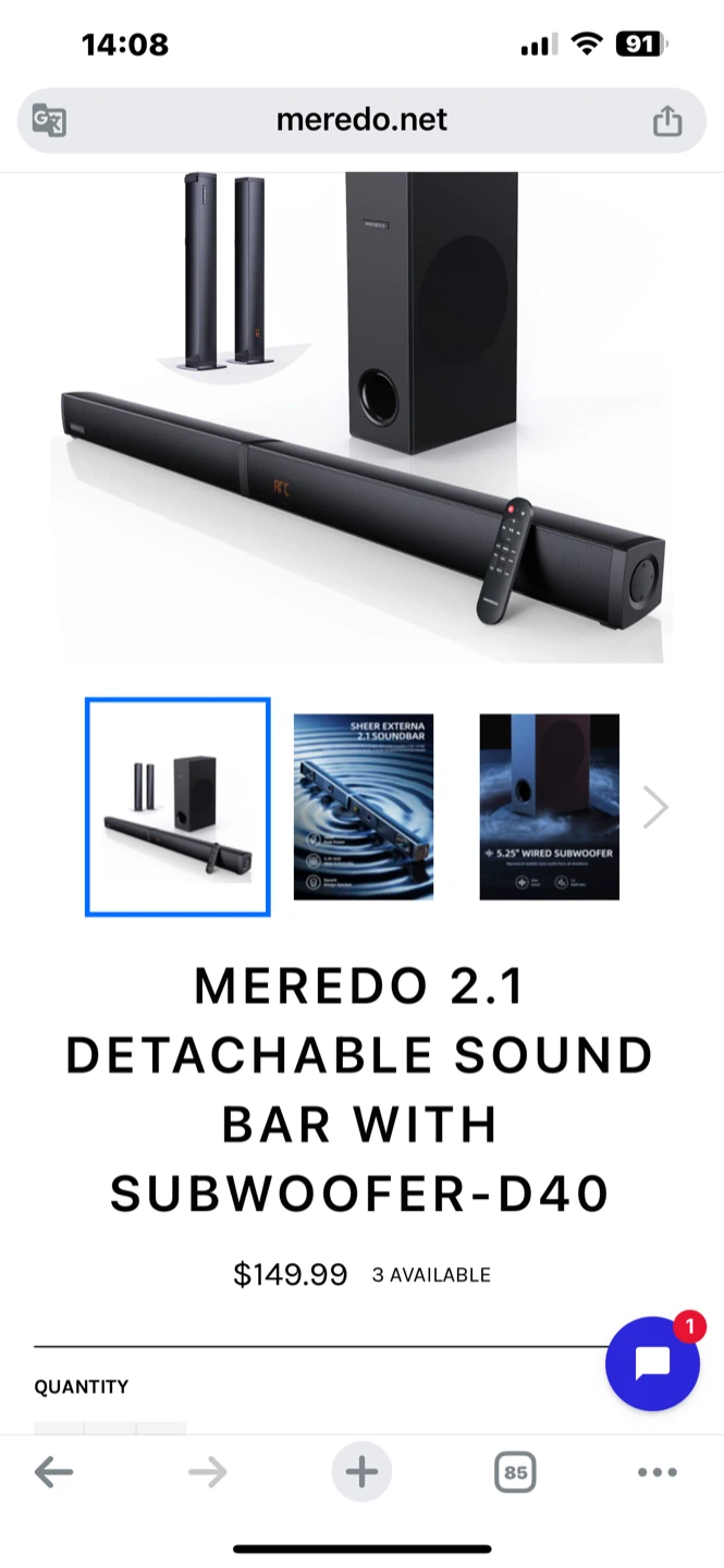 *Brand New*MEREDO 2.1 DETACHABLE SOUND BAR WITH SUBWOOFER-D40