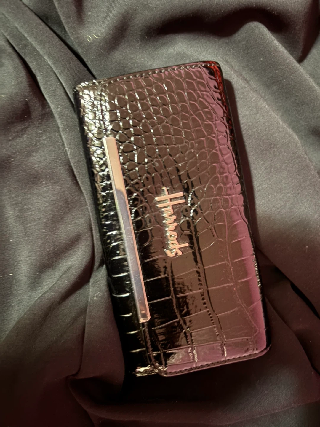 Buy & SellHarrods Black Croc Embossed WalletHarrods Black Croc Embossed Wallet$30Harrods wallet with a black crocodile embossed exterior. It features a zip closure and interior compartments. A chic accessory for everyday use!ConditionLike newBrandHarrodsWHERE TO MEETCheck LocationView MapSELLERverifiedAshWishing Well Acres41034 reviews0 chats·0 favorites·11 viewsSEND CHAT TO SELLERHi Ash! I’m interested in your listing.Hi Ash! I’m interested in your listing.Get the Karrot app to chatSign In to chat