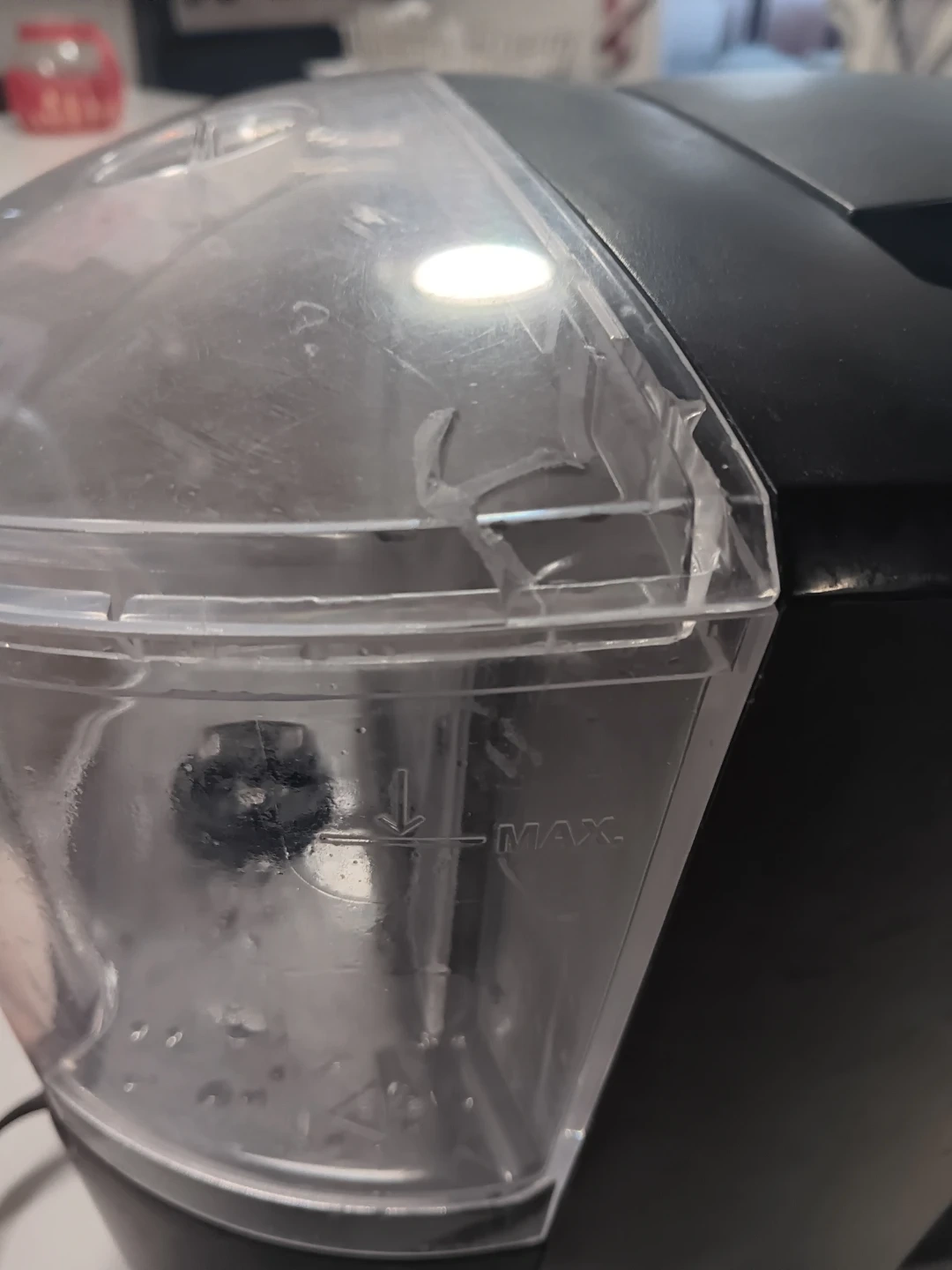 This Keurig coffee maker brews single cups of coffee. It has a removable drip tray for taller mugs. The water reservoir has a max fill line. Has small crack in lid does not effect working condition brews perfect every time