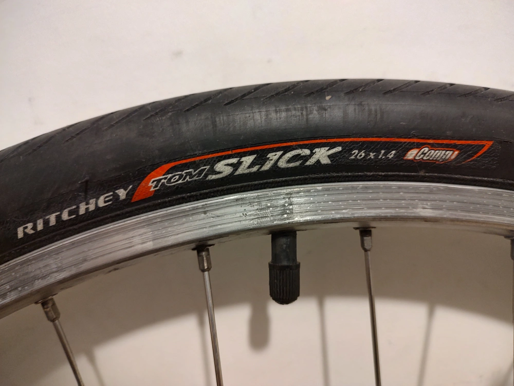Comes with Ritchey 26 x 1.4 hybrid tire and QR skewer.