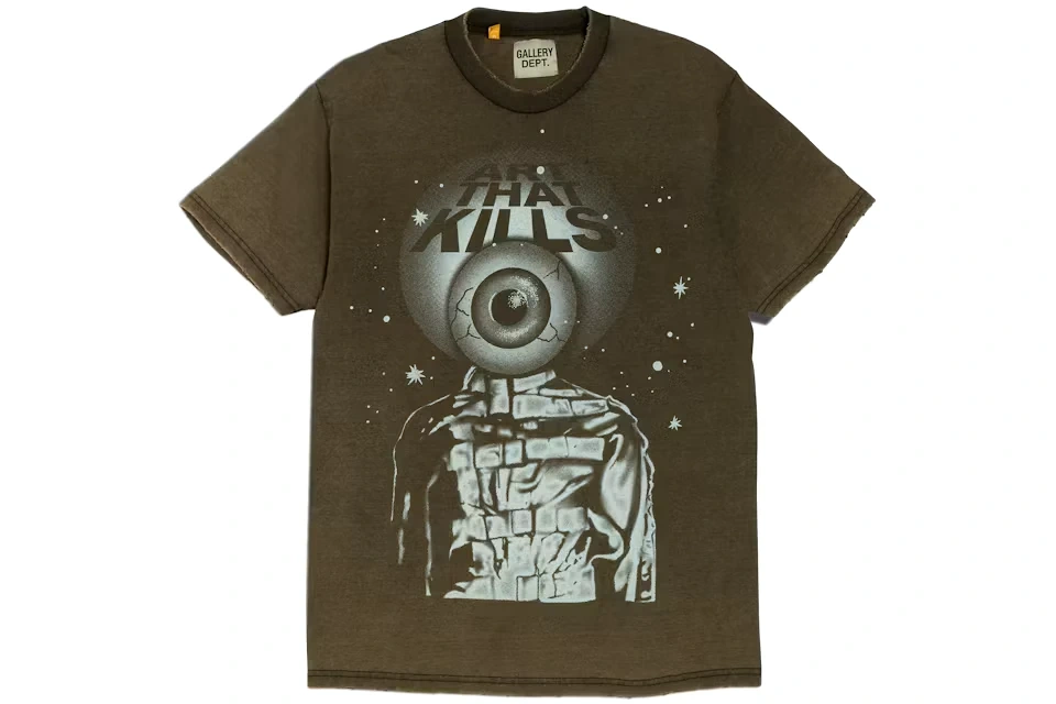 Gallery Dept. graphic t-shirt. Features a bold "ART THAT KILLS" graphic on the back. Made with a distressed cotton blend. Retail $1,200