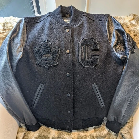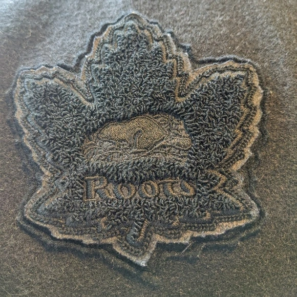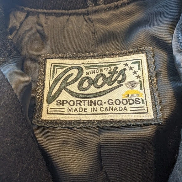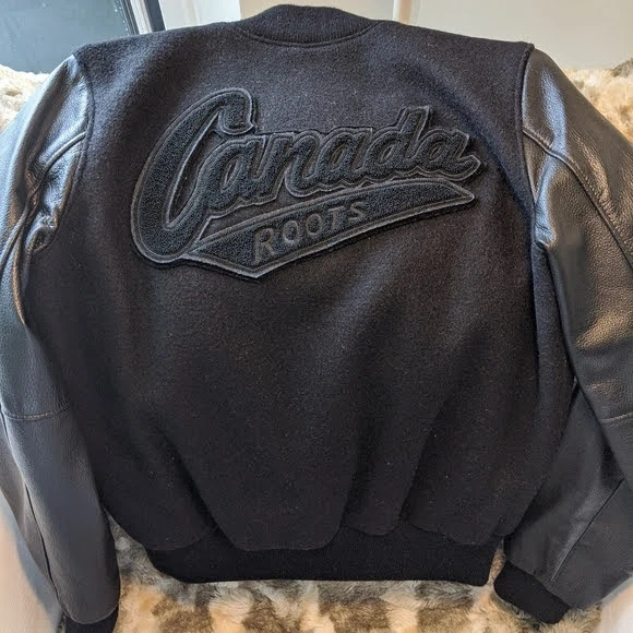 Roots black awards jacket 100% genuine leather/melton.