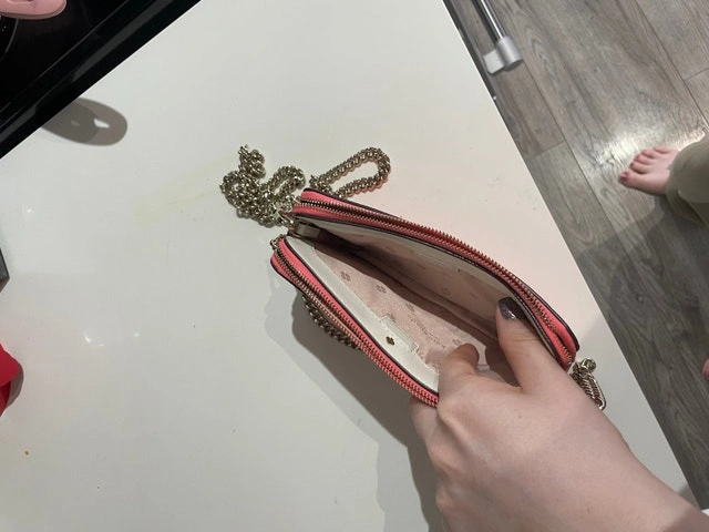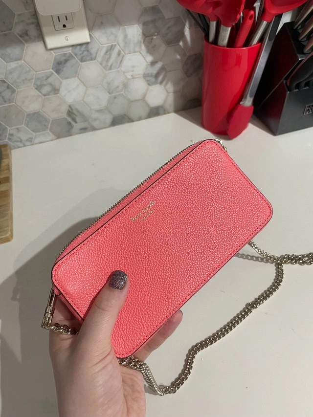 This is a stylish Kate Spade pink purse with a chain strap, perfect for carrying your essentials in a fashionable way. This purse is in used good condition. If the ad is up, it's still available. Cash only please! Pickup only.