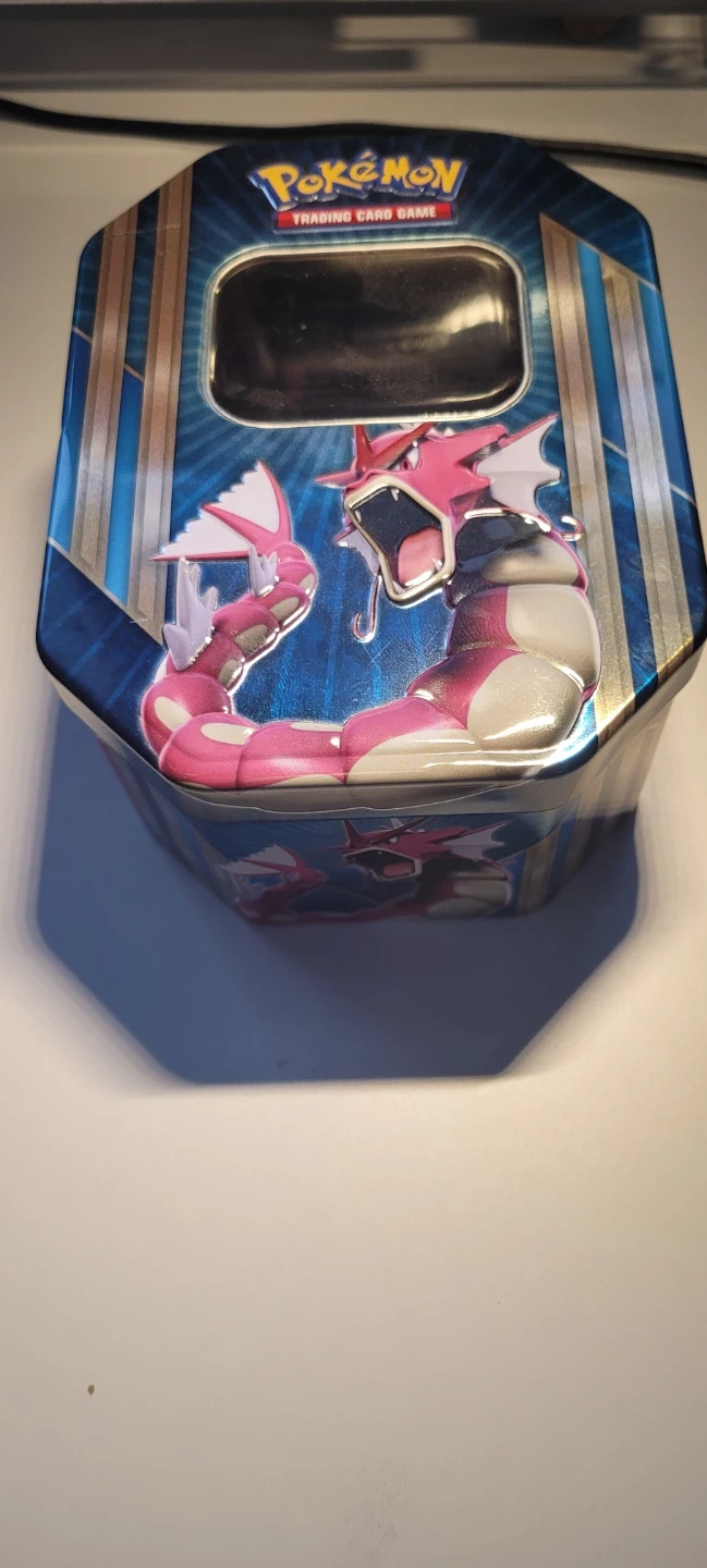 A collection of Pokémon trading cards, including Charmander and Charmeleon. Comes with a Pokémon Trading Card Game tin featuring Gyarados. Great for collectors!