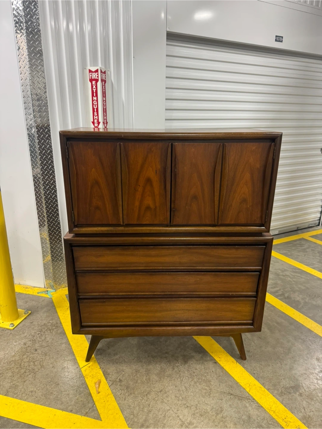 Dark Wood Double Door Cabinet with Paw Print Decal