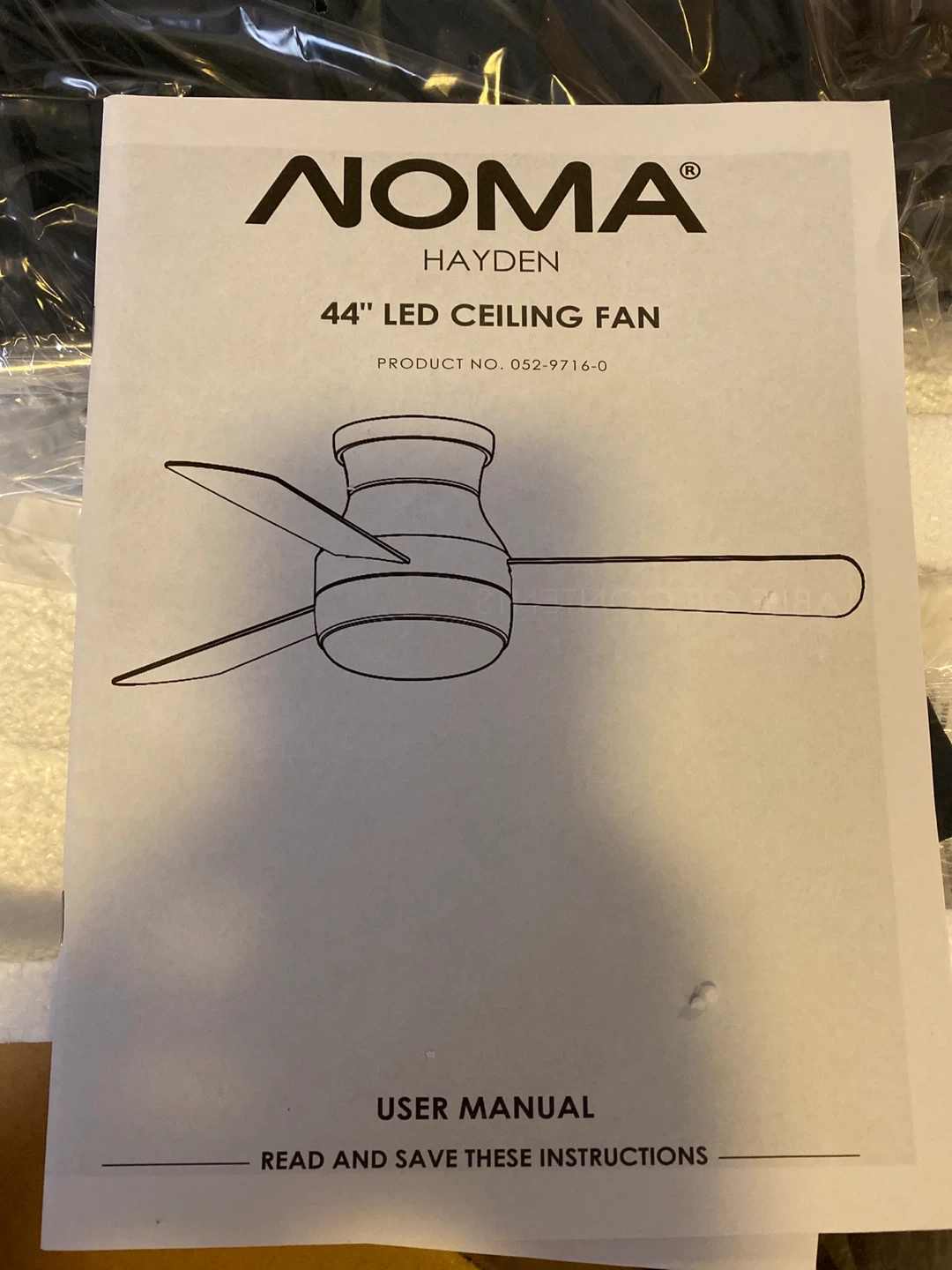 It's a NOMA Hayden 44" LED ceiling fan. Includes user manual. This fan is great for circulating air and providing light in a room.