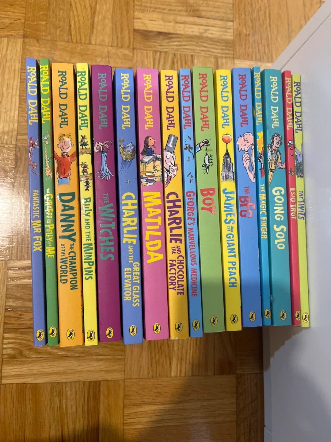 22Selling a collection of Roald Dahl books! Included are titles like Fantastic Mr Fox, Danny the Champion of the World, Billy and the Minpins, The Witches, Charlie and the Great Glass Elevator, Matilda, Charlie and the Chocolate Factory, George's Marvellous Medicine, Boy, James and the Giant Peach, The Magic Finger, Going Solo, The Twits, and Esio Trot