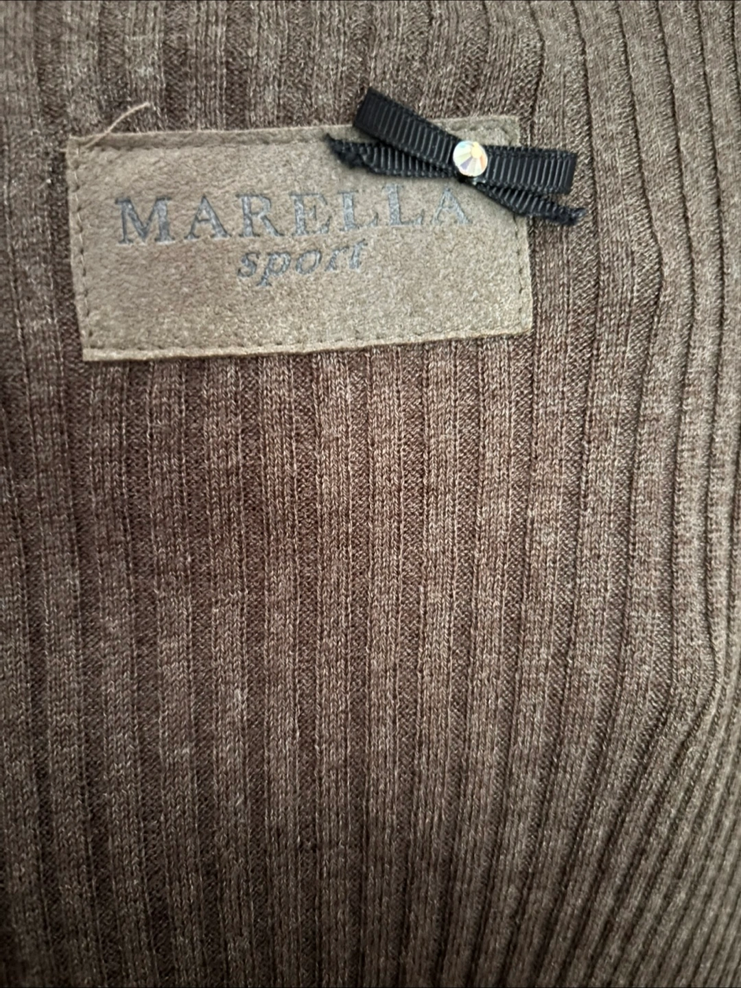 Selling a Marella Sport ( one of the lines owned by Max Mara) brown cardigan in size small. It's in great condition just like new, and features a ribbed texture. Very soft fabric made with wool and silk. Perfect for layering!