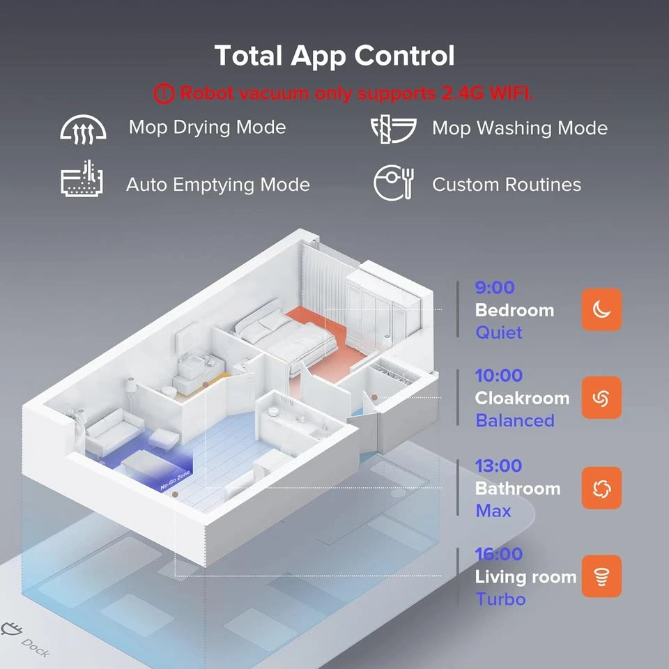 68Excellent condition With Roborock’s all-in-one docking system, S8 Pro Ultra can automatically complete the mop washing and drying process, preventing mold growth and unpleasant odors. Auto self-emptying with a large dust bag allows holding for up to 7 weeks of dust. The dock even cleans itself and refills the robot water tank for you, extending its mopping range to up to 3230 sqft (300 sqm). Just set it and forget it. Roborock’s newest dual rubber brush system provides a cleaner effect in one go and fewer hair tangles. The more powerful 6000Pa suction drives the robot vacuum to pick up debris, hair, dust, and more from hard floors and carpets more quickly. The VibraRise 2.0 improves its vibration module from 1 area to 2 areas, providing a wider mopping zone, up to 3000 times/min high-speed scrubbing, and over 6N consistent mopping pressure, stains from soda to dried-on spills and more can be cleaned deeply and more effectively. Please note: If the water volume is too low or there is no water, S8 Pro Ultra will not be able to produce enough water flow for mopping. Please check if there is enough water in the clean water tank. The liftable brushes and mop can separate vacuuming and mopping in a single clean, maximizes the cleaning effectiveness for different tasks such as carpets cleaning and hard floor cleaning, and avoids leaving stains after a clean. If an entrapping threshold is set in the app, the brushes and mop will both lift automatically and help the robot climb it more easily. With 3D structured light and infrared image technology, Roborock S8 Pro Ultra is smart enough to identify unknown objects on the floor, determine their size and location, and bypass them in both bright and dark environments. Paired with LiDAR navigation and 3D mapping, detailed maps are generated for more accurate and customized cleaning. Roborock App offers you total control over the robot vacuum, including auto emptying mode, mop washing and drying mode, suction and water flow adjustment, schedule cleaning, furniture adding, and more. S8 Pro Ultra can even send a smart suggestion for setting No-Go zones when detecting easy-to-get-suck places during cleaning. Amazon Alexa, Google Home, and Siri Shortcuts support let you command your robot with the power of your voice as well. Charges from empty to full in only 4 hours of fast charging. Get up to 180 minutes of runtime in one clean, enough to tackle most homes. You can choose off-peak times to charge to save on power as well as the costs of using peak-time electricity.